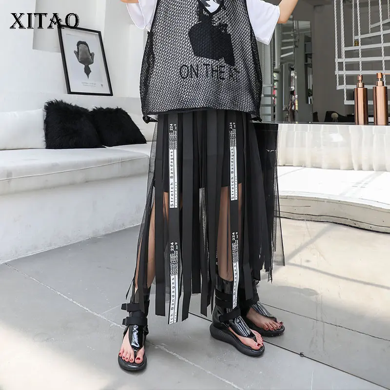 Женская длинная юбка с принтом XITAO, черная Повседневная трапециевидная юбка с эластичной талией, в Корейском стиле, WLD1084, лето 2019