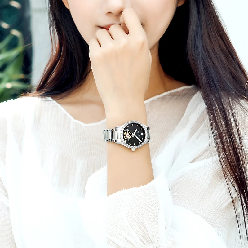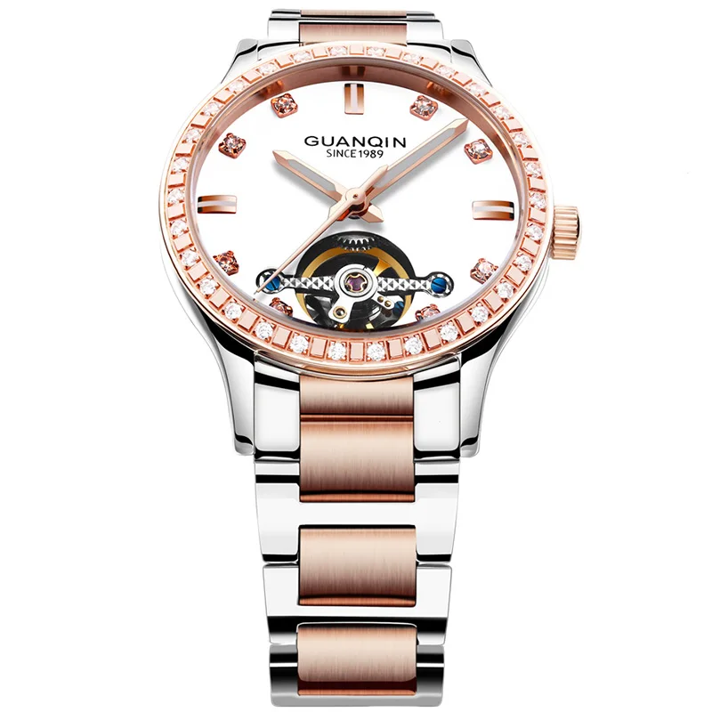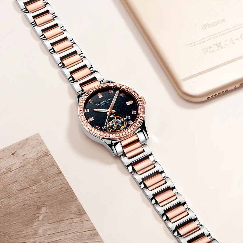 GUANQIN смотреть для женщин автоматические часы Tourbillon световой часы Скелет платье Водонепроницаемый женские часы от топ бренда, Роскошные наручные часы