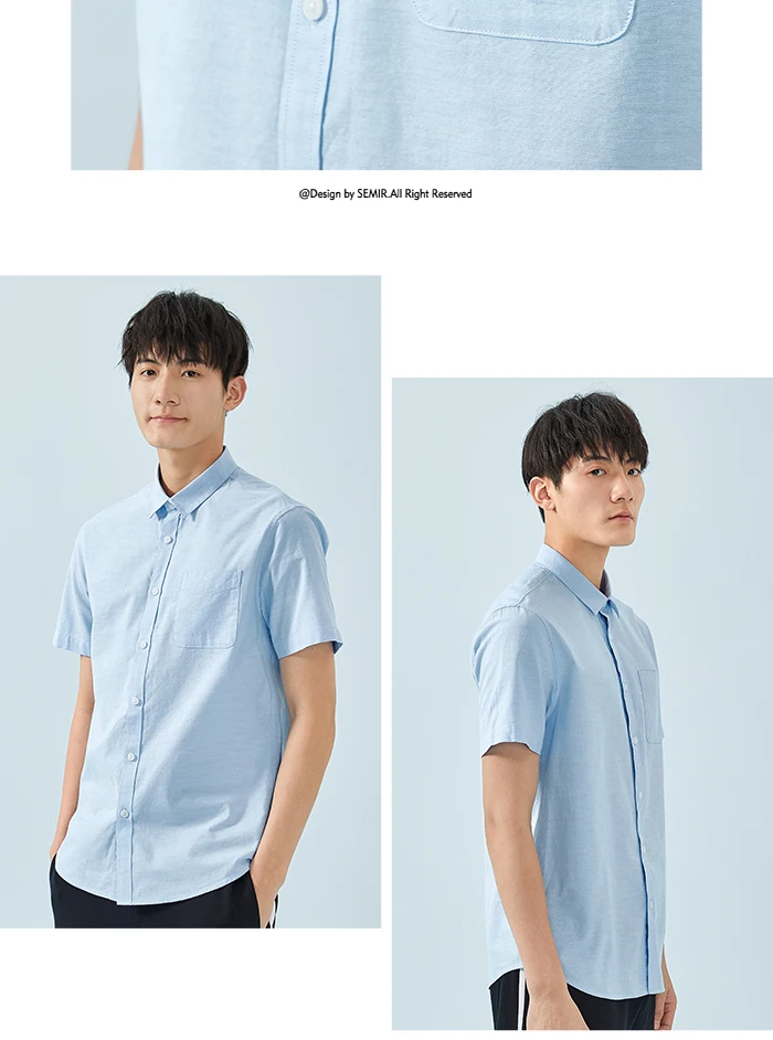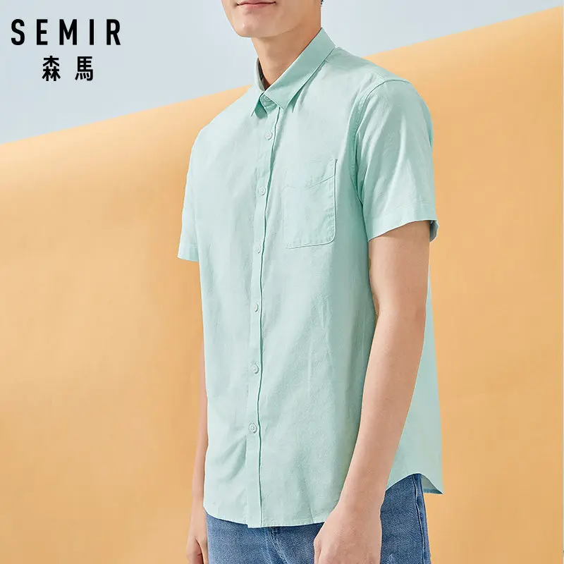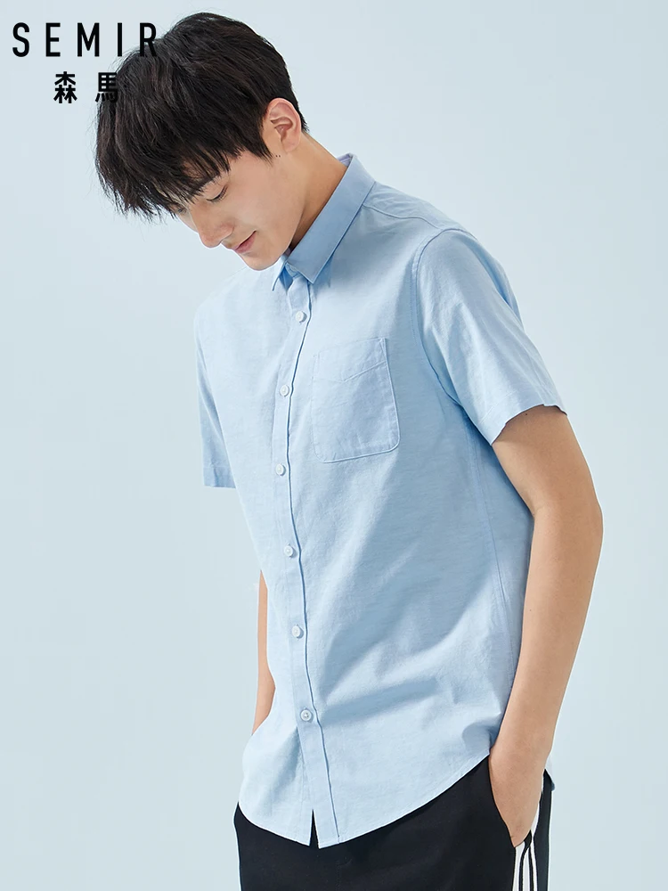 Мужская хлопковая рубашка SEMIR, однотонная Классическая рубашка с короткими рукавами, весна-осень, 2019