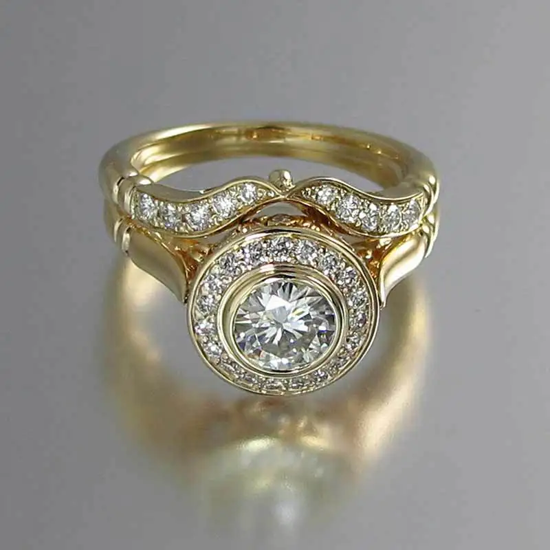 Набор женских обручальных колец, роскошный винтажный комплект колец с кристаллами желтого золота, обручальные кольца для женщин