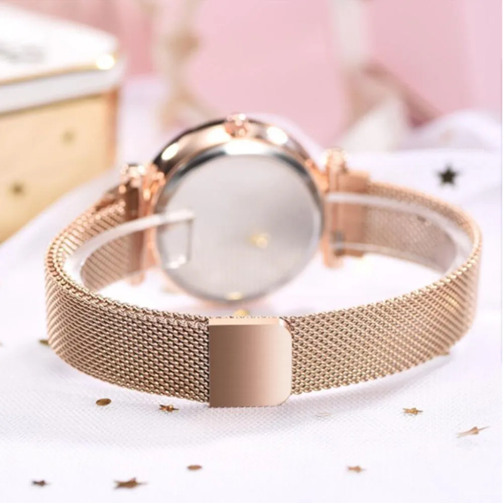 Роскошные женские часы Звездное небо с магнитной сеткой из нержавеющей стали Кварцевые наручные часы повседневные часы relogios feminino montre femme