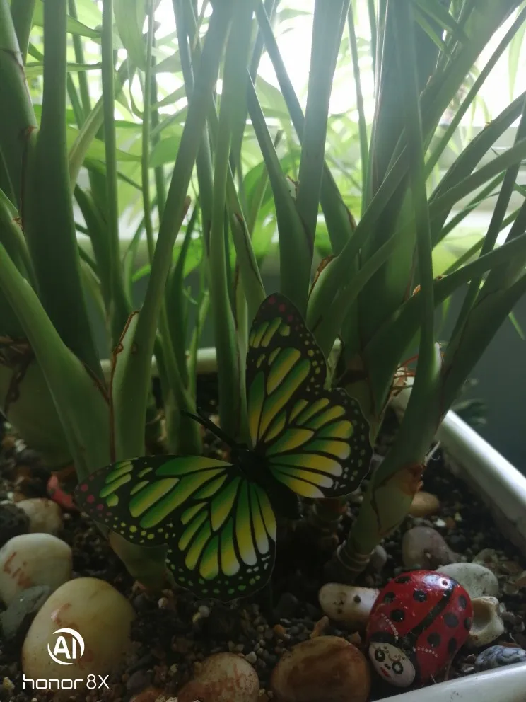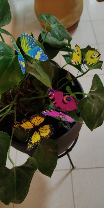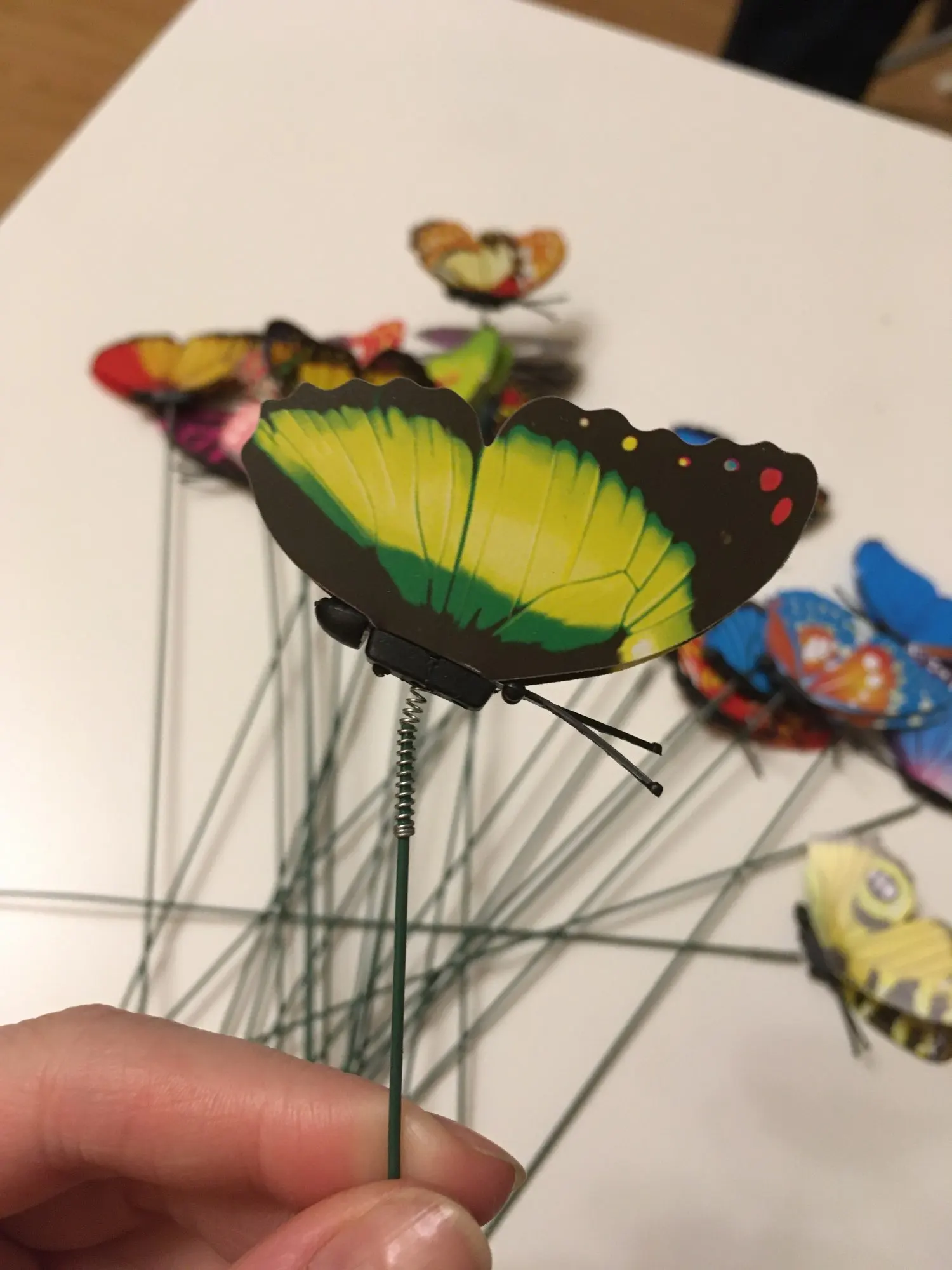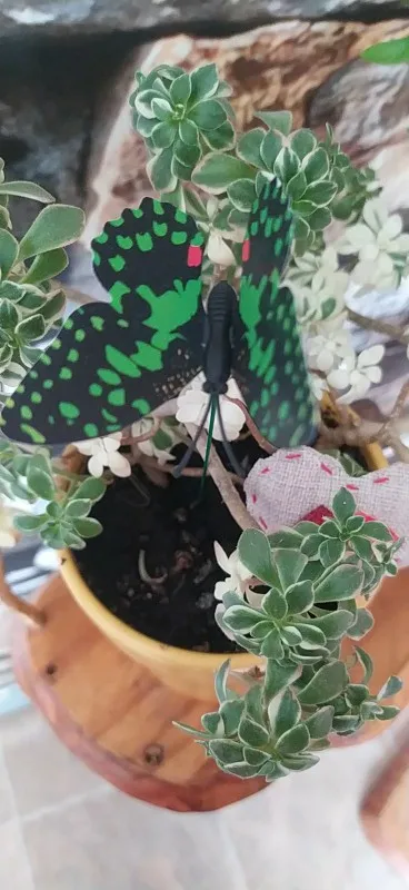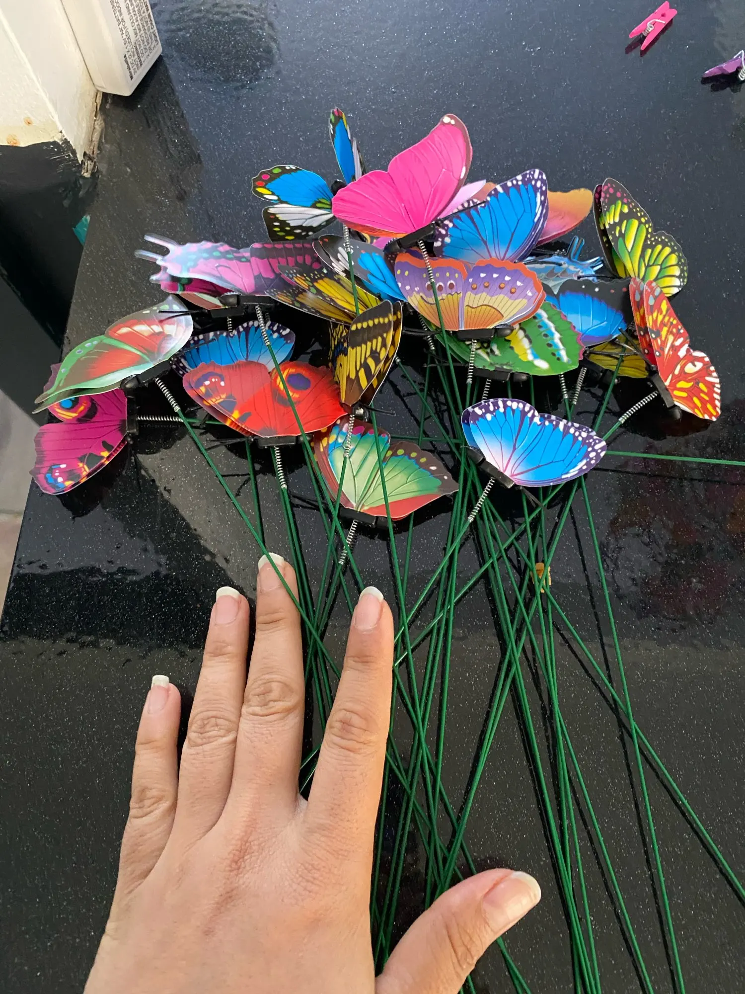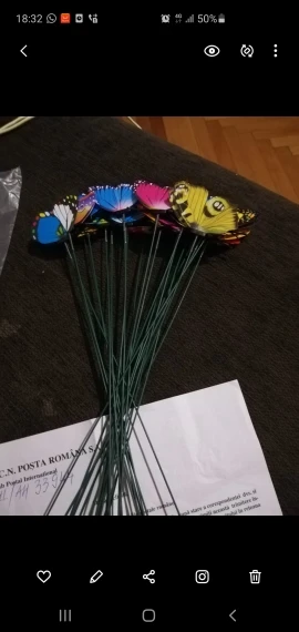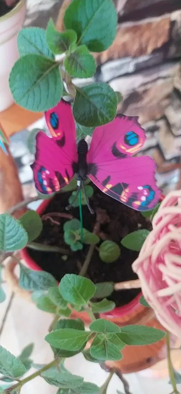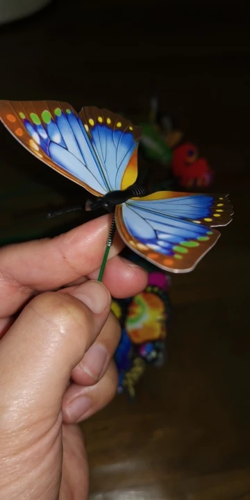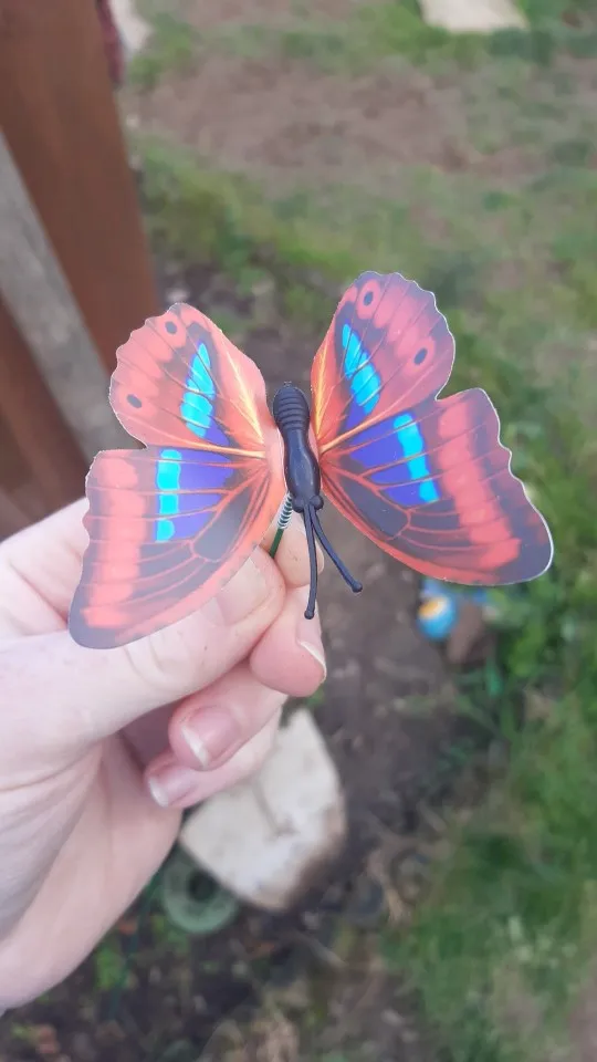 Бабочки неплохие, небольшие, примерно 4-5см, но прутья , на которые они закреплены очень тонкие, тоньше , наверное, чем зубочистки. В почву входят нормально, не гнутся. И , спасибо продавцу, отправил их, хотя бы , не сгибая прутья.