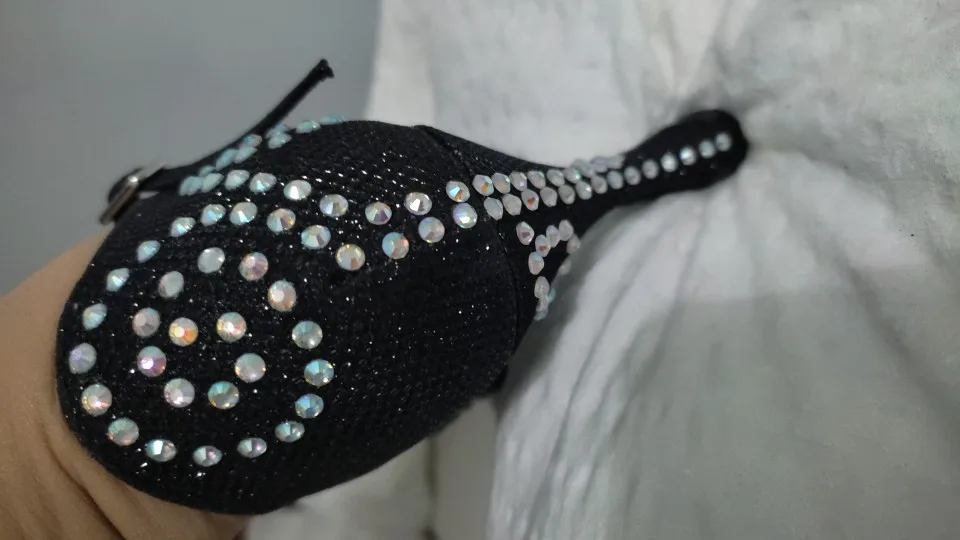 Женские туфли для латиноамериканских танцев, танго, стразы, свадебные туфли для сальсы, черные туфли на платформе и высоком каблуке, JuseDanc