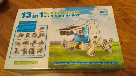 товар пришёл быстро и это единственный плюс, а теперь минусы: была сломана одна шестеренка, самая главная, мощности солнечной батареи не хватает вообще, а чтобы сдвинуть модель с места, не хватает мощности двигателя с подключенной к нему обычной мизинчиковой батарейки, мой совет- не берите, если только просто пособирать роботов и всё, а работать они не будут