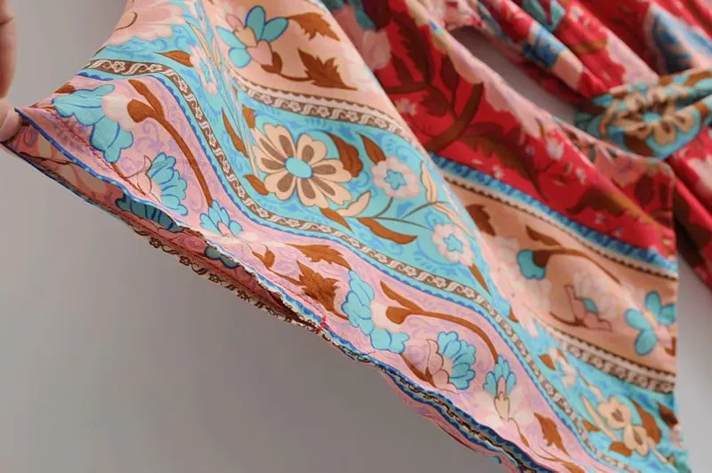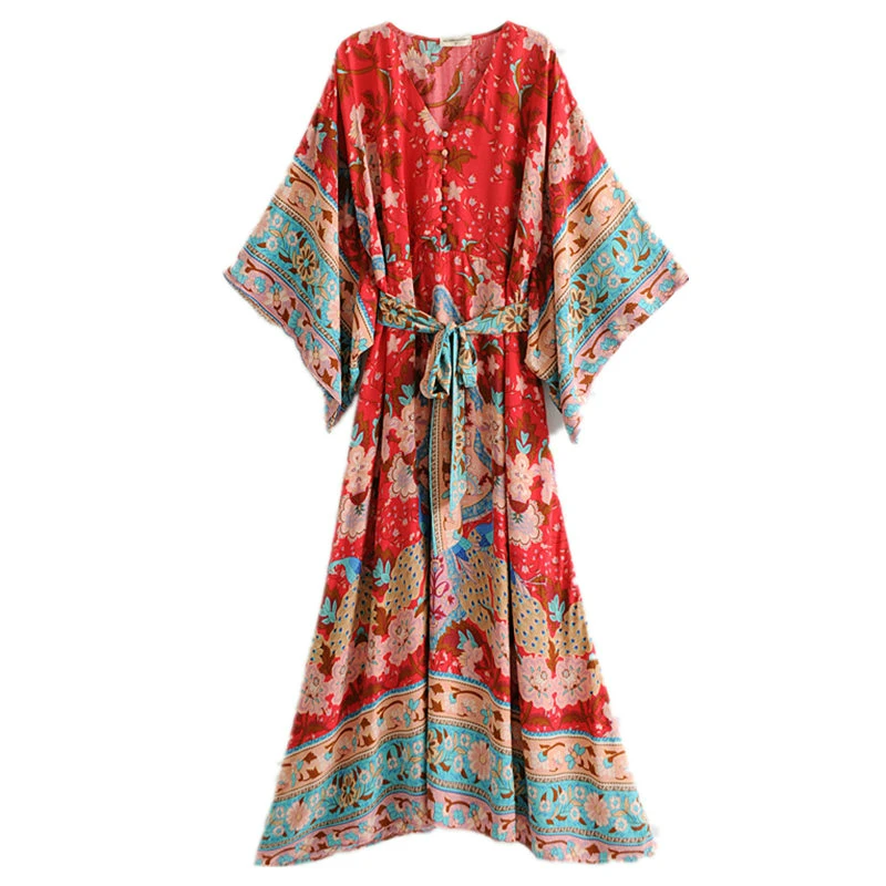 Женское пляжное кимоно с цветочным принтом, V-образным вырезом и рукавом летучая мышь