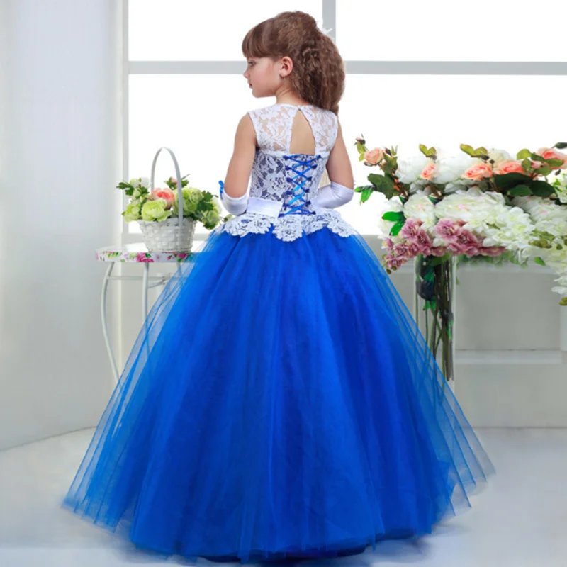 Ярко-синие платья с цветочным узором для девочек, детские вечерние ...