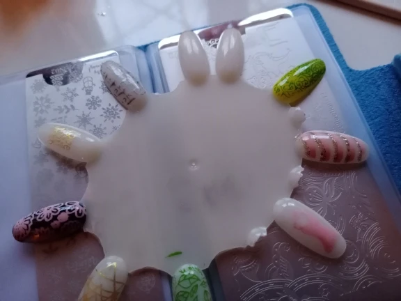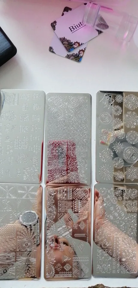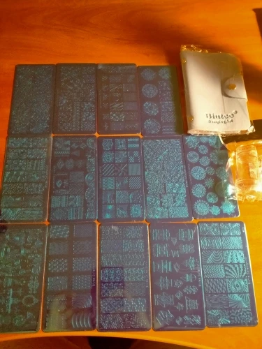 Отличные пластины и штамп. Приехали быстро, дней за 5-7, рисунок чёткий, глубокий, работают и с лаками для стемпинга и с обычными лаками и с гель краской для стемпинга. Чехол удобный, есть ещё место для других пластин. По поводу самих рисунков конечно разнообразие не очень, есть несколько пластин которые подойдут только на короткие ногти, и несколько которые вообще не понятно куда использовать, тк рисунки огромные и для маникюра странные. Вот кому нужно огромное кресло на ногтях? Оно ни на какой ноготь, даже на ноге не влезет, а частями размещать - вообще не понятно будет что это. Учитывая цену за набор эти пластины можно выбросить.