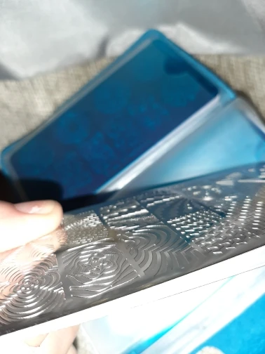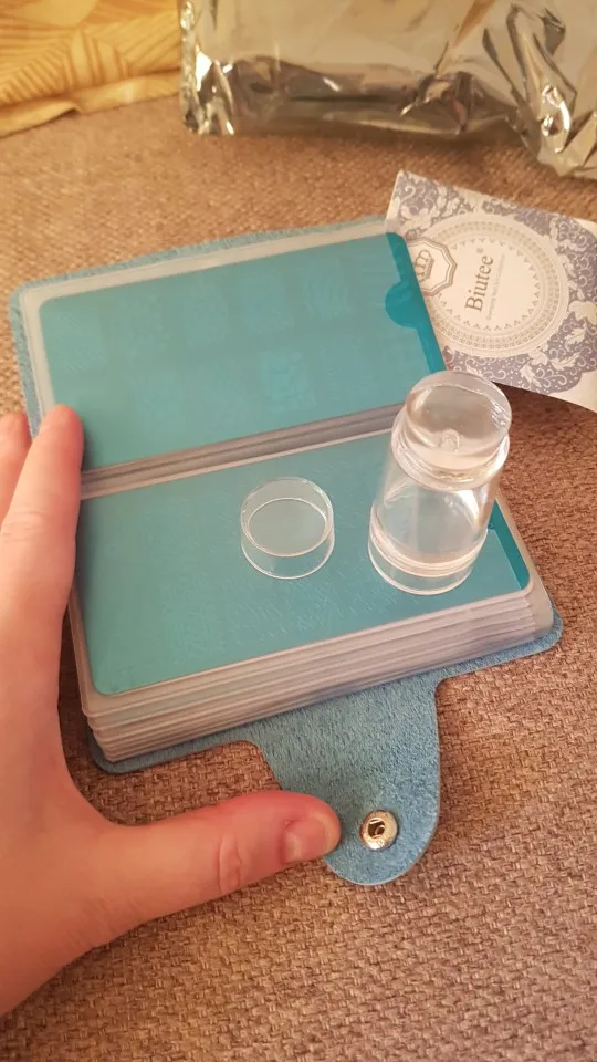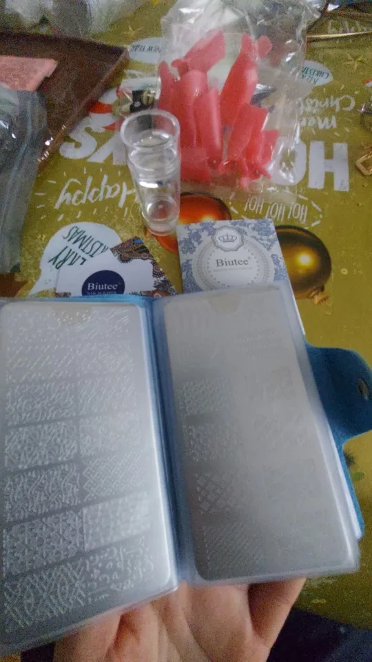 заказала 27.11 получила 07.12, принес курьер до двери, в целом набор не плохой , пластины не слишком глубоко выгравированы, но отпечатывают не плохо, штамп хороший мякенький, скраперы тоже не плохие , свою функцию выполняют