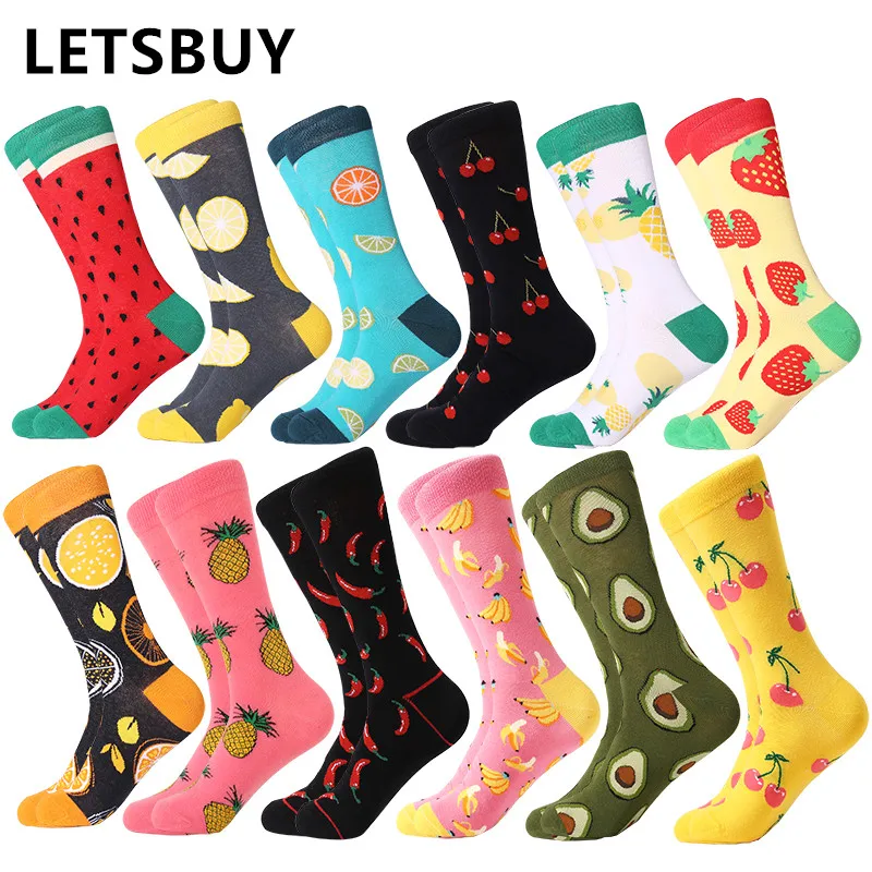 Хлопковые носки мужские LETSBUY, Разноцветные классические носки с фруктами, свадебный подарок, 12 парЛот