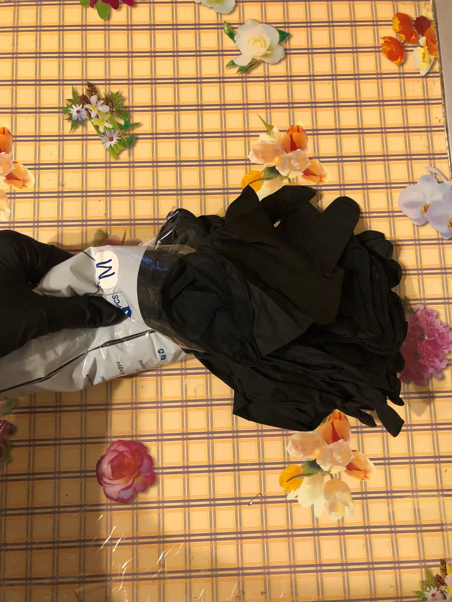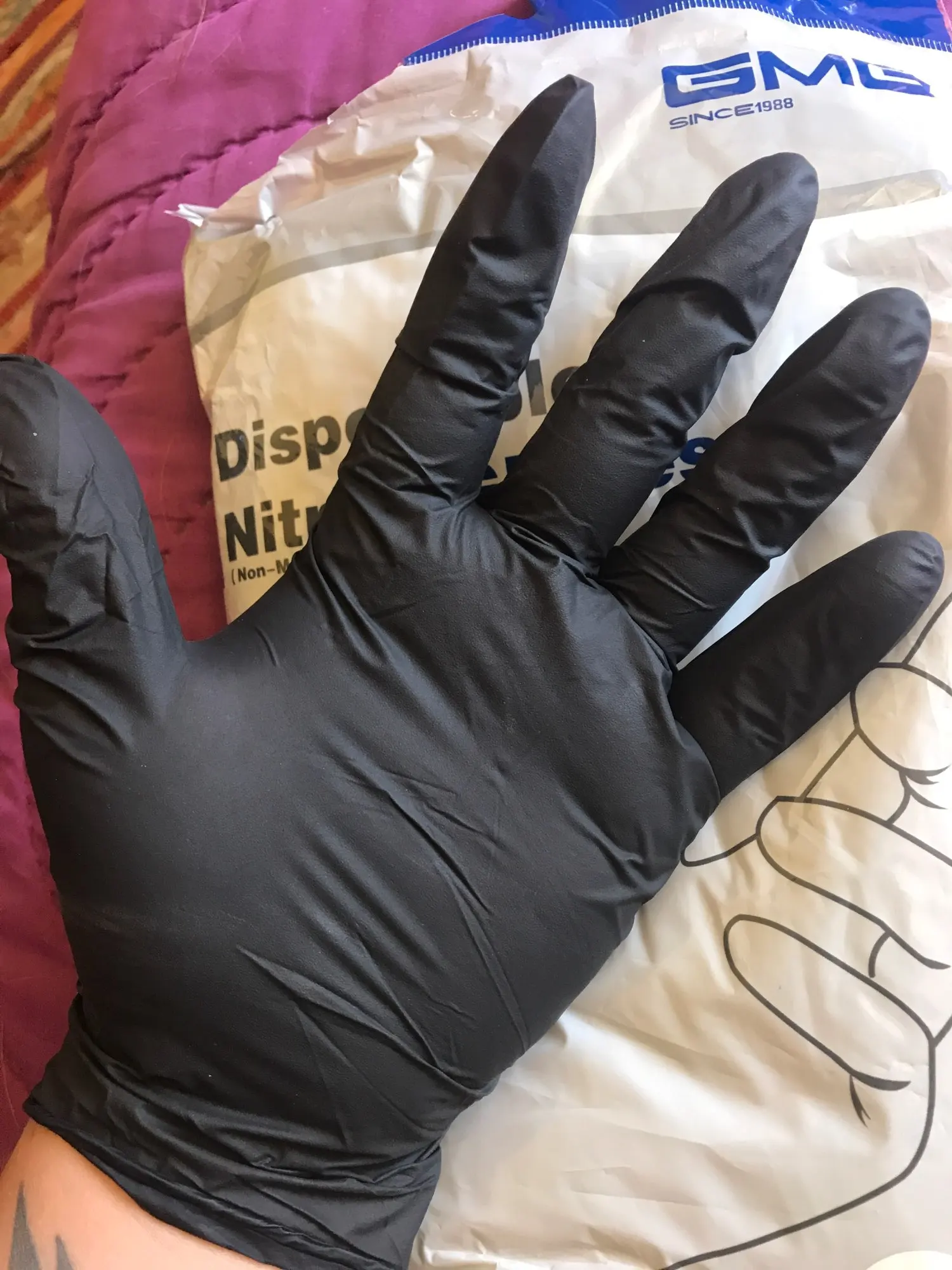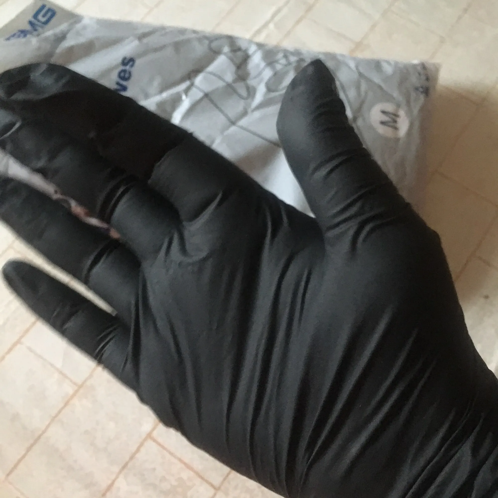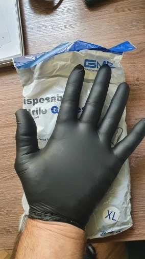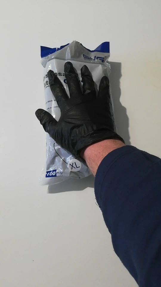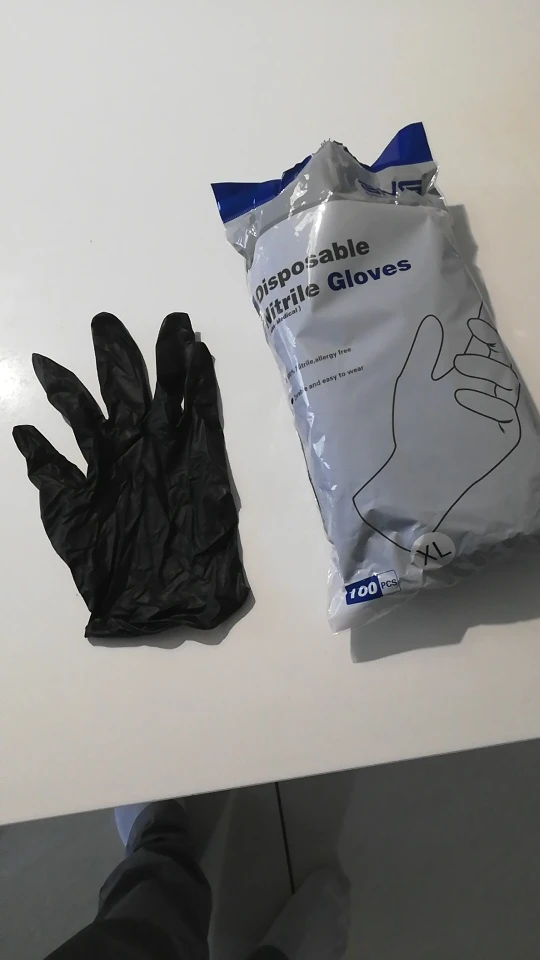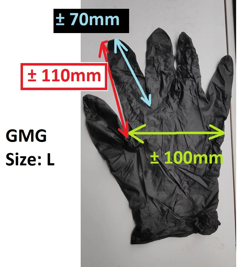 Как в описании. 100 штук черные нитриловые перчатки размер "L" Ширина = около 100 мм, Длина указательного пальца = около 70 мм Длина от кончика указательного пальца до основания большого пальца = около 110 мм Доставка в Нидерланды в течение 18 дней