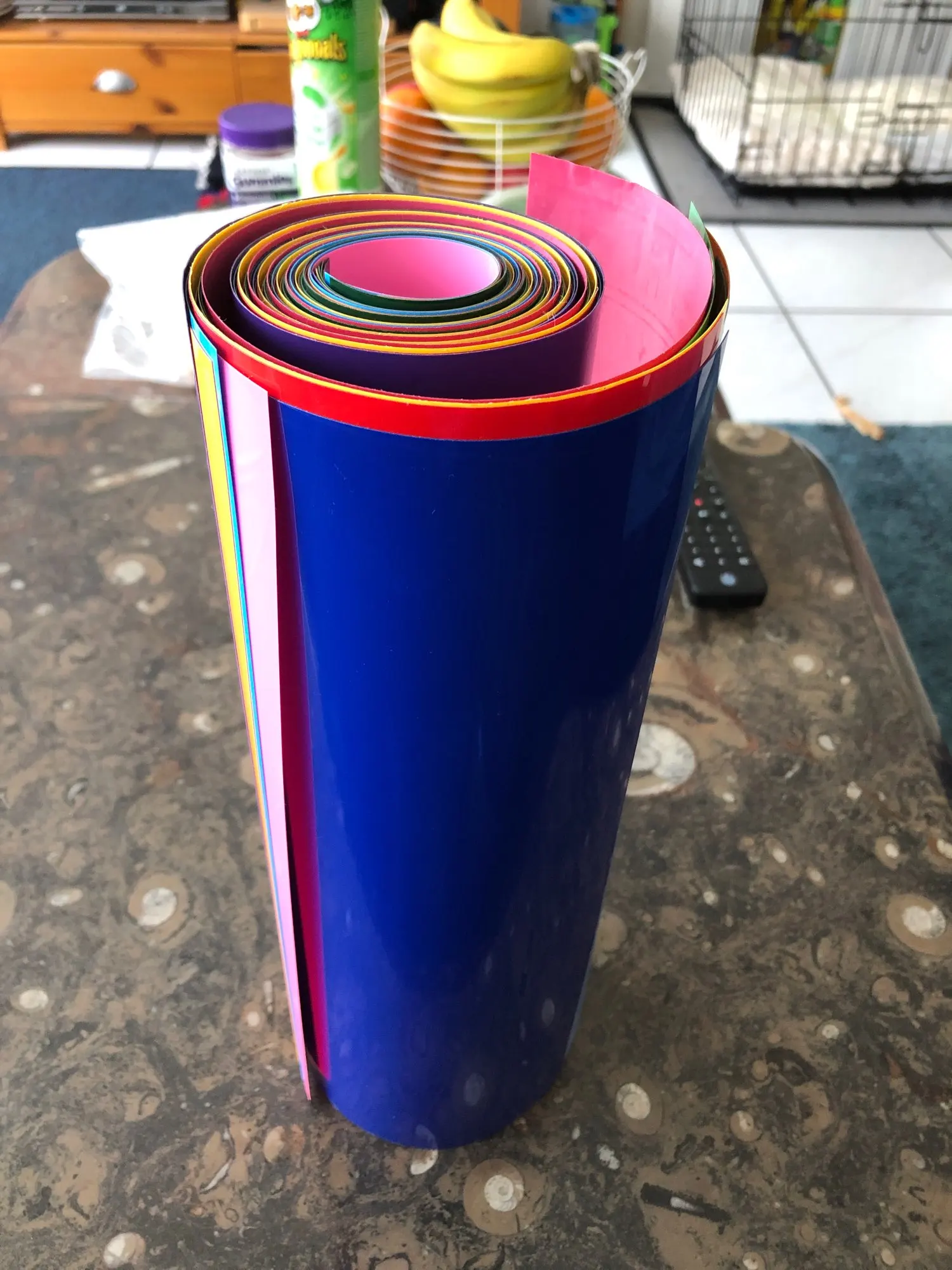 Все три цвета, которые я заказал, были в рулоне вместе. Это около двух или 3 футов каждого цвета. Отличная цена и качество на ощупь действительно хорошее. Я еще не использовал его, поэтому я не знаю, насколько хорошо он работает или остается на ткани, но, кажется, хорошее качество