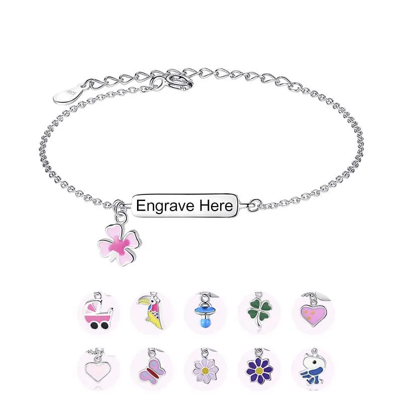 Бесплатная гравировка имени браслет персонализированный браслет для детей девочек 925 стерлингового серебра ювелирные изделия настроить DIY подарок 16 видов