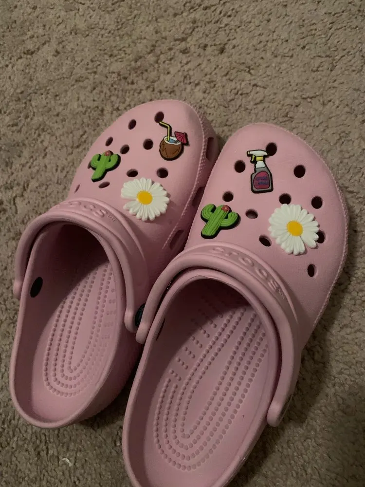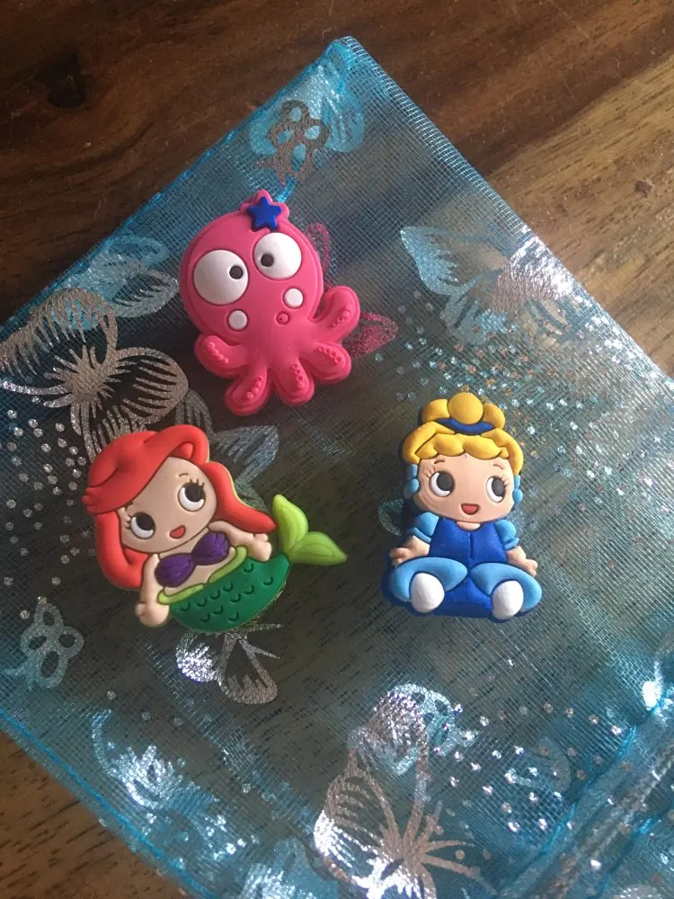Пришли быстро, заказывала несколько штук. Сделаны добротно, материал приятный, запаха не было. Продавец положил украшения в красивый мешочек, в нем и будем хранить аксессуары для Кроксов. Рекомендую! Спасибо, удачных продаж!