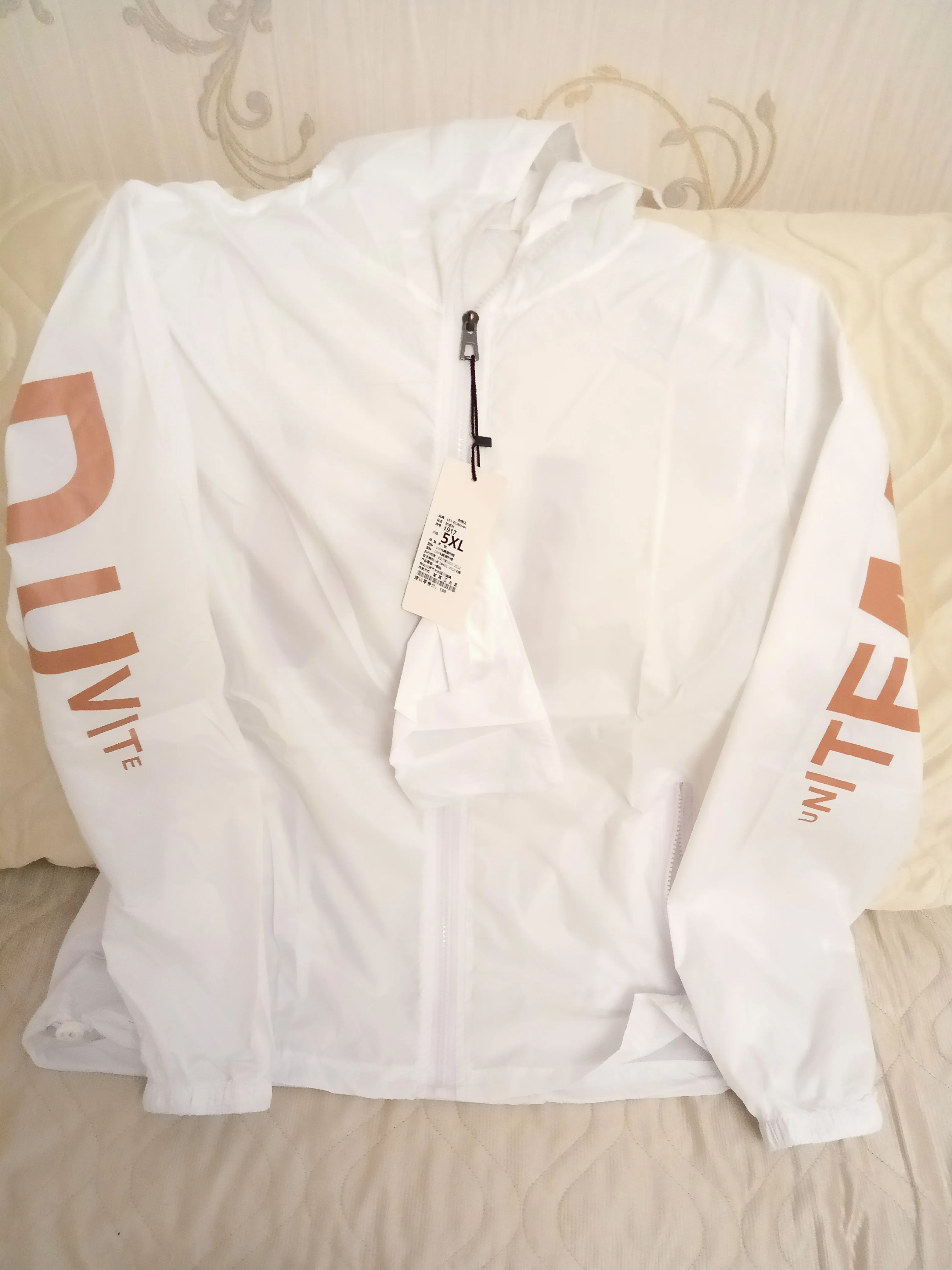 Куртка по смыслу и содержанию, типа ветровка или даже плащ рыбака. Тонюсенькая ткань, аж просвечивает. Яркая, сочная по цвету, надписи на спине и по задней части рукавов - непереводимый набор английских слов с множественными ошибками на тему, кажется, баскетбола. Размер M на рост 170, параметры 85-60-95 подошёл только-только. По плечам села хорошо, но капюшон хотелось бы пообъемнее. Рекомендовала бы брать на размер больше. Надеюсь, на летнюю футболку в Сочи во время теплого микроскопического дождя будет самое то. Накидка складывается с маленькую сумочку и удобно кладётся в багажник машины. Цветом, выделяющимся из серой толпы, точно можно будет как-нибудь воспользоваться. За 1000 рупий с хвостиком, конечно, дороговато. Доставка молниеносная.