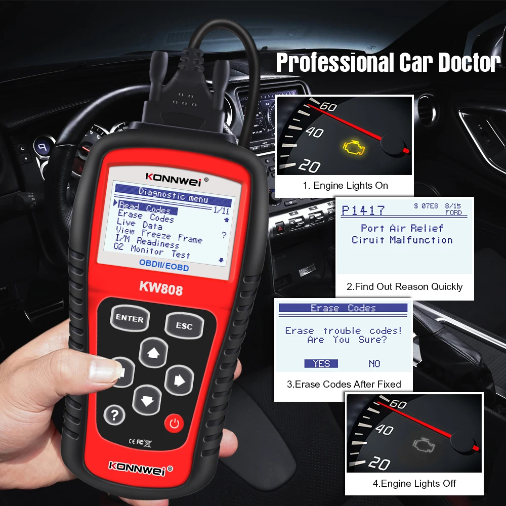 Порт KW808 sup s и дизельные и бензиновые транспортные средства, если автомобиль совместим со стандартными протоколами OBDII, с диагностическим портом OBDII 16pins. Читает и очищает общие и некоторые коды неисправностей maunfactures.Американский (США) автомобильДля стандартных автомобилей OBD2 с 1996 года по настоящее время:Для Chrysler, для Ford, для GM, для JeepЕвропейский автомобильДля стандартных автомобилей OBD2 с 2003 года по настоящее время:Для Alfa Romeo, для SAAB, для Acura, для Opel, для Audi, для Seat, для Peugeot, для Bentley, для Skoda, для Daewoo, для Benz, для Daihatsu, для Land Rover, для BMW, для Vauxhall, для Citroen, для Volvo, для Fiat, для VW, Для Ford, для JaguarЯпонский автомобильДля стандартных автомобилей OBD2 с 2008 года по настоящее время:Для KIA, для Isuzu, для Honda, для Mitsubishi, для Hyundai, для Dacia, для Lexus, для Mazda, для Nissan, для Subaru, для Suzuki, для Toyota.Предупреждение:Не поддерживает Российские Автомобили до 2012 года, ВАЗ, УАЗ, Лада; Не работает с грузовикамиДля Renault, SsangYong,Не поддерживает Opel Corsa c 2004 1,3 CDTI Nor Support vw golf 4 2002Не поддерживает Citroen C4/C5.Не поддерживает Автомобили Chevrolet,Не поддерживает Renault Logon/ meganeНе поддерживает skoda fabia.Пожалуйста, свяжитесь с нами перед покупкой.