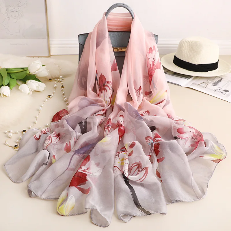 Весна Лето Женский шарф шелковые шарфы Цветочные fema...US $7,43