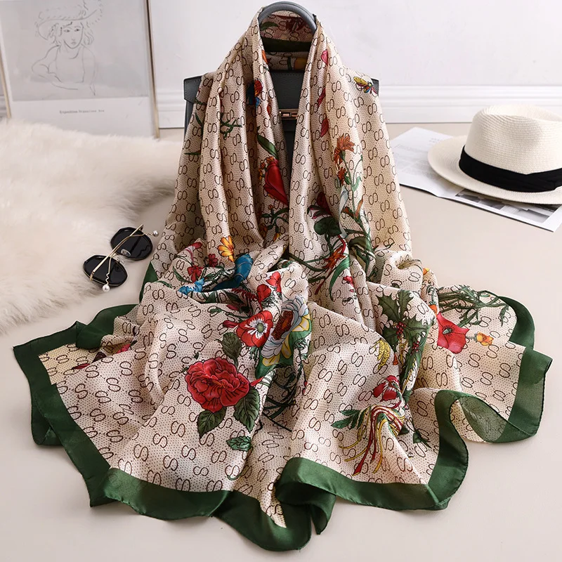 Дизайнерские 2021 женский шарф с модным принтом шелковые шарфы летн...