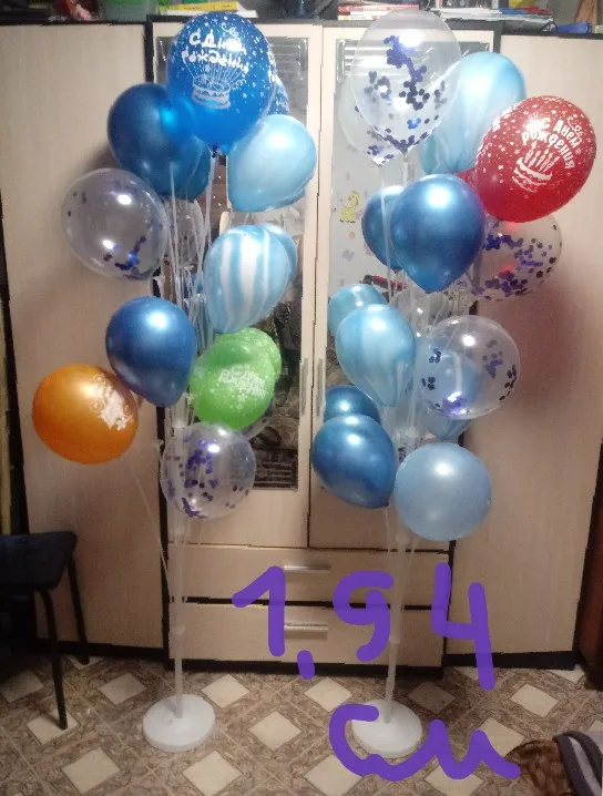 Классная вещь . Купила две стойки на 19 шаров дочке на день рождения. Очень легкие в сборке, в основу наливается вода для устойчивости. Все в наличии, целостности и сохранности. Продавцу огромное спасибо! Фото добавлю через неделю, после др.