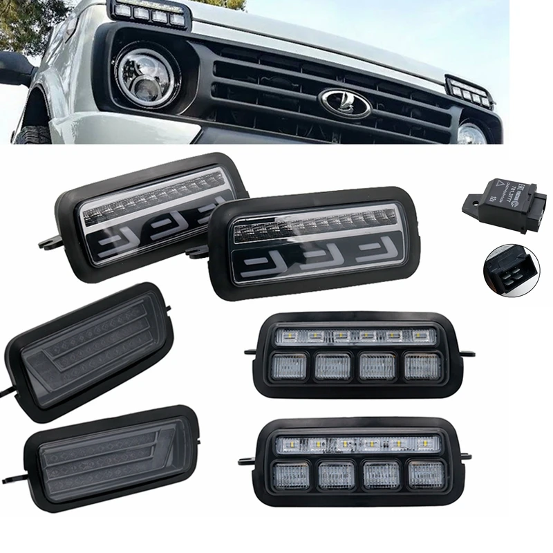 Светодиодный фонарь DRL, лампы для поворотного сигнала для Lada Niv...