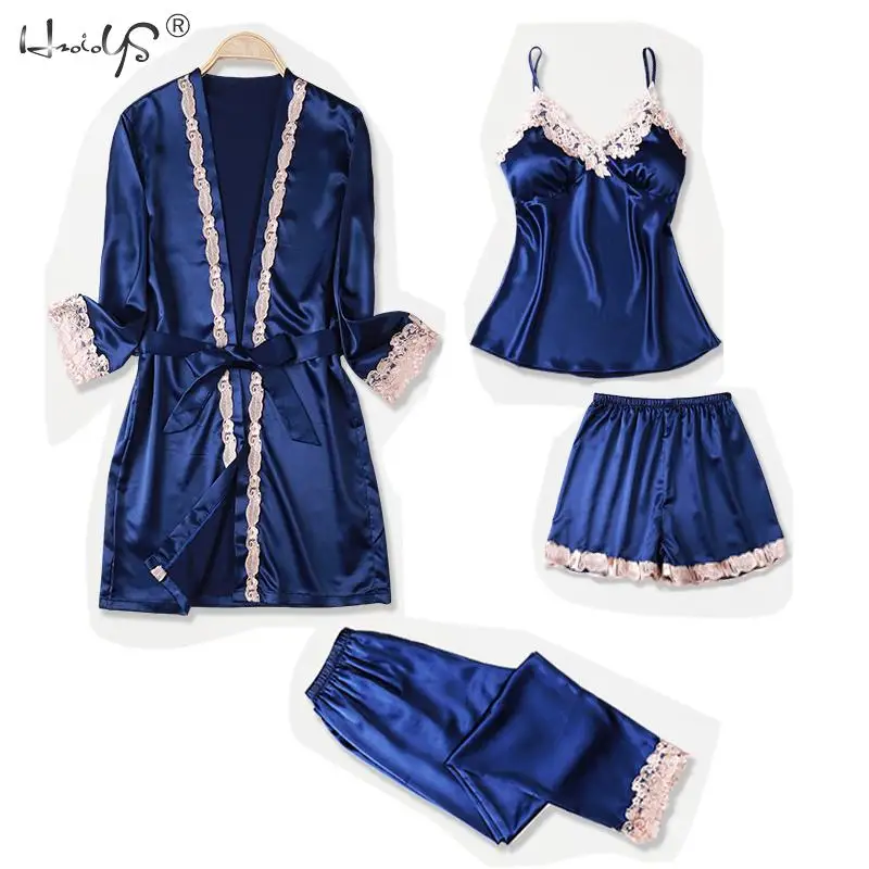 Комплект пижамный женский из 4 и 5 предметов, халатик и платье, пикантное нижнее белье из искусственного шелка, одежда для сна, Осень-зима