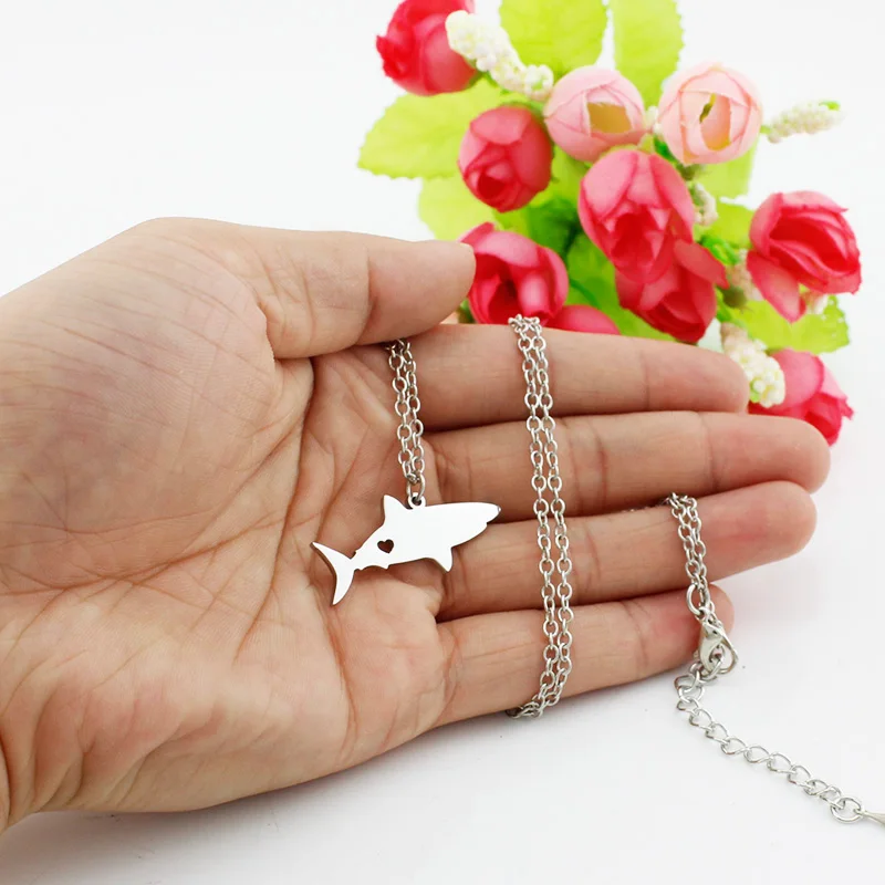 Цветное ожерелье JWEIJIAO в виде рыбы акулы для женщин и мужчин, металлическое Очаровательное украшение из нержавеющей стали в подарок SKU46