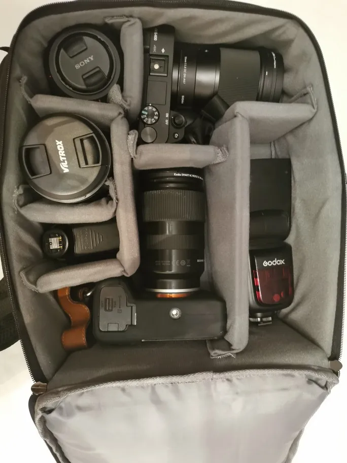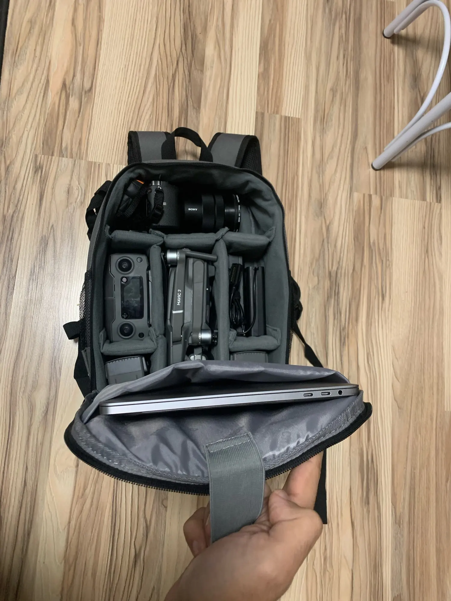 Отличный рюкзак маленький но довольно вместительный, отличный вариант для того случаях когда хочется взять только камеру пару объективов и вспышку и не хочется тащить весь чемодан на колёсах, под квадрокоптер вообще идеально, в карман помещается макбук про 13 и айпад про 12,9 Все внутренние отсеки на лепучках, их можно переформировывать под свои нужды, или вовсе снять для использования рюкзака в повседневной жизни, сам рюкзак очень добротный стенки плотные и не мнутся можно спокойно доверить ему свою технику )) вообщем всем советую, добротная и стильная вещь, заказывал доставку из России пришло за 3 дня курьером на дом