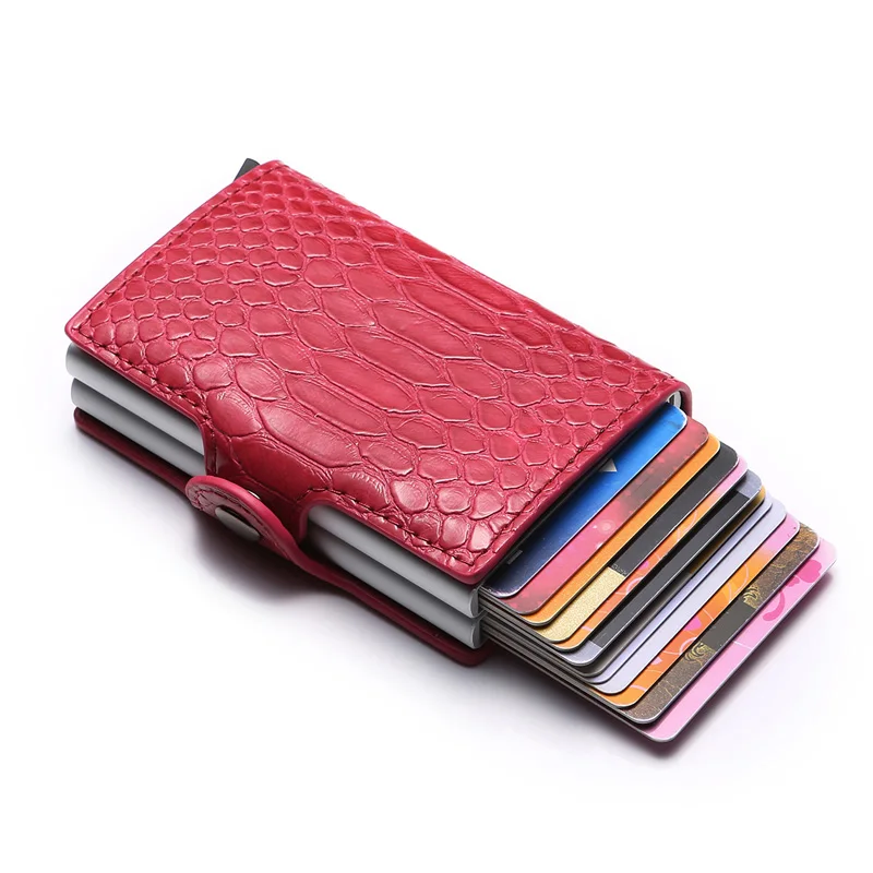 Кошелек женский, красный, с Rfid-защитой, компактный, алюминиевый, розовый, тонкий, для карт, кожаный, тонкий