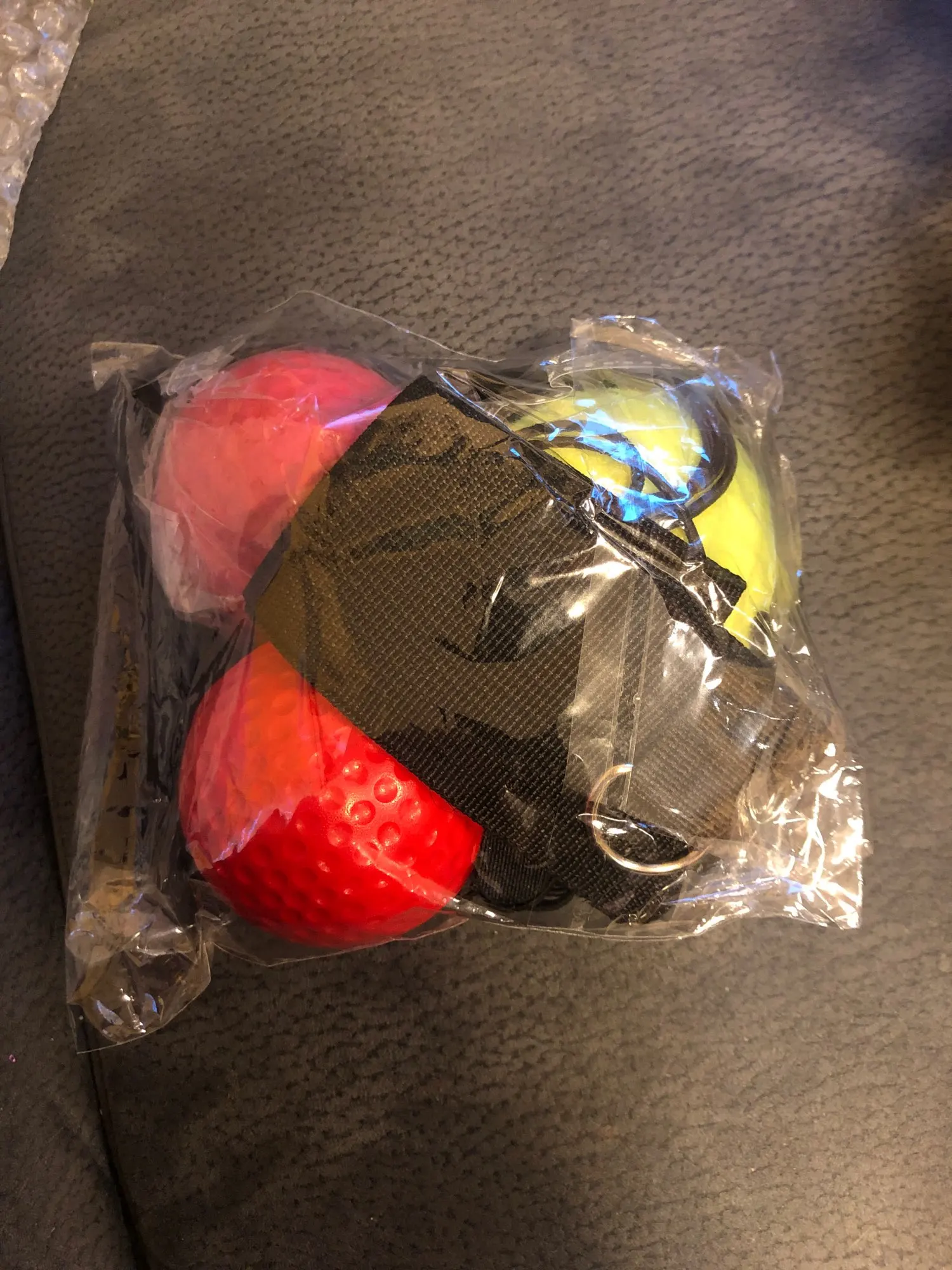 Посылка прилетела за 11 дней. Упаковано в пупырчатый пакет. Хороший качественный набор для выработки рефлексов детям и взрослым не помешает для тренировок. Самый легкий шар бесполезен, а остальные все хорошо. В наборе сумочка , чтобы убирать.
