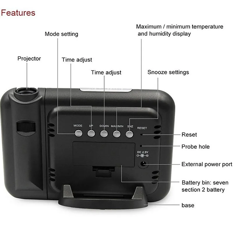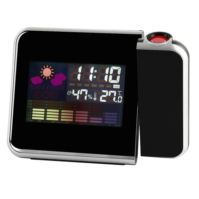 Получите всю необходимую информацию, чтобы пройти через день, как только вы проснетесь! Эти часы оснащены полноцветным экраном, который отображает время, температуру, влажность и проецирует время на любую стену или потолок. У него также есть функция будильника, поэтому вы никогда не пропустите ритм. Работает от 2 батареек AAA (не входят в комплект).