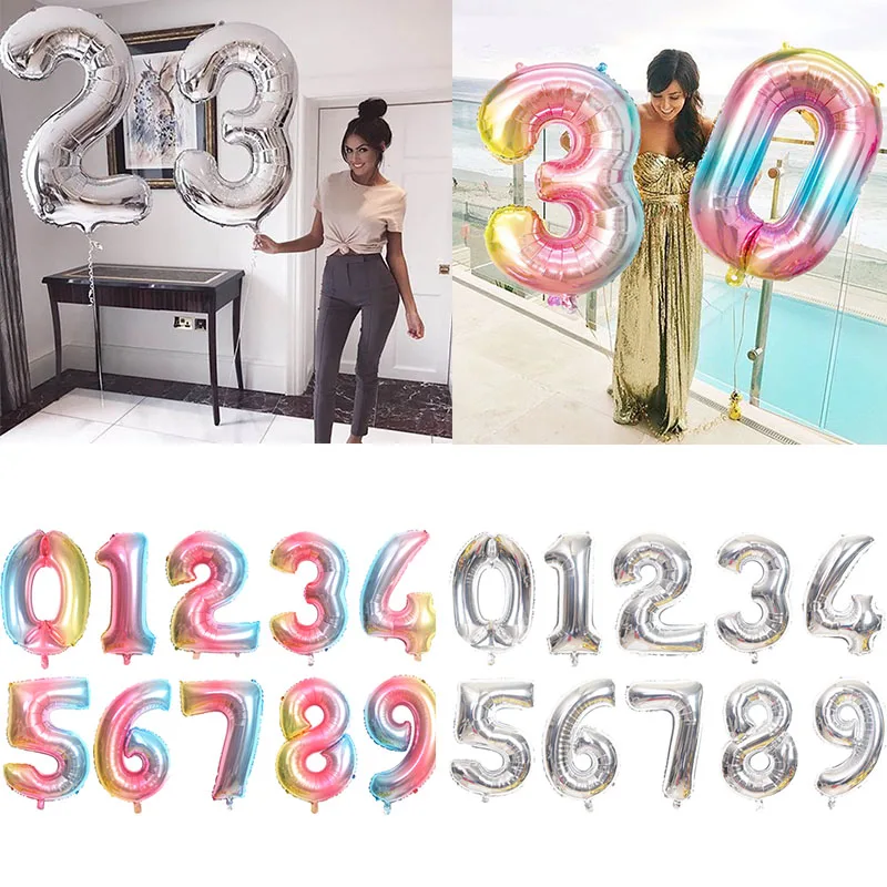 Воздушные шары в виде цифр, размер 16, 32 дюйма, цифры 0, 1, 2, 3, 4, 5, 6, 7, 8, 9, гелиевые, для свадьбы, дня рождения, украшения для детей