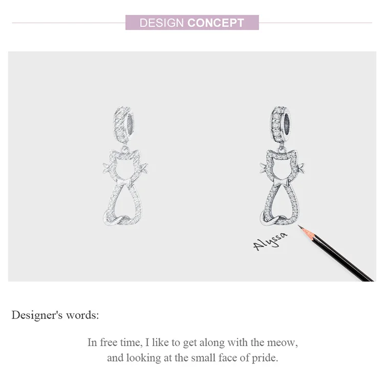BAMOER кошка подвеска в виде котенка Шарм 925 пробы Серебряный проз...