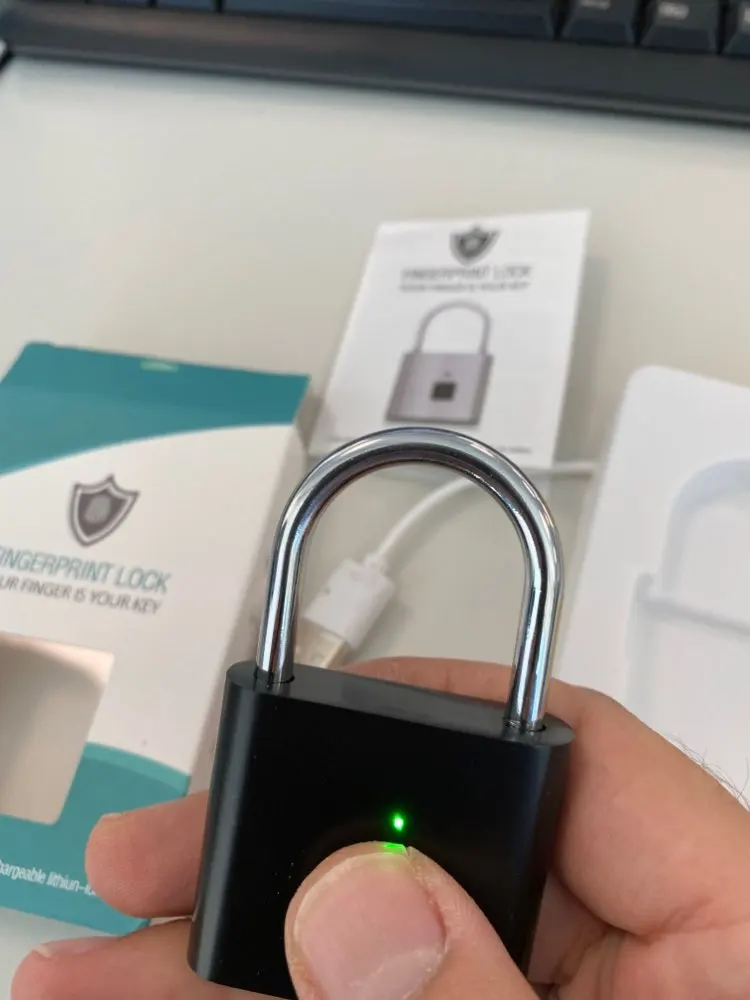 Классный замочек. Супер быстрая доставка, СДЭК, три дня и заказ уже получен. Разобралась с принципом действия без особого труда. Открывается замок при подключении к зарядке, - любым пальцем. Потом, при открытом положении нужно запрограммировать свои отпечатки пальцев, путём прикладывания, несколько раз каждого ( желаемого) пальца, пока не загорится маячок зелёным цветом. Мне понравился. Круто. Магазин, продавца и его товар рекомендую, всё надёжно.
