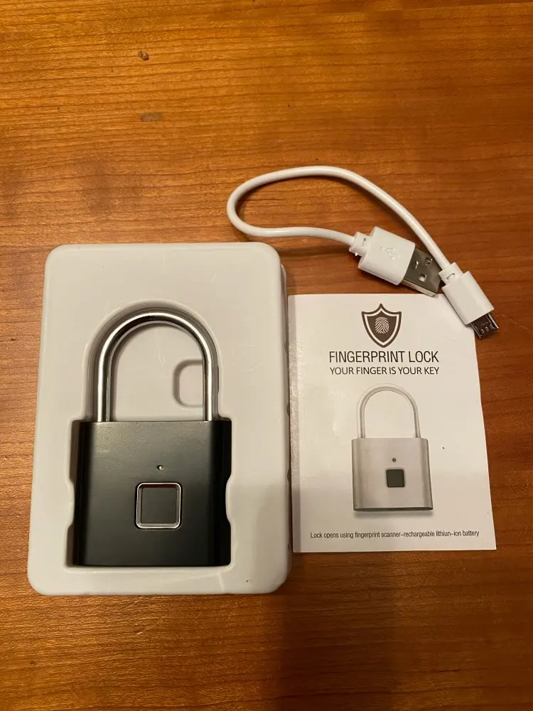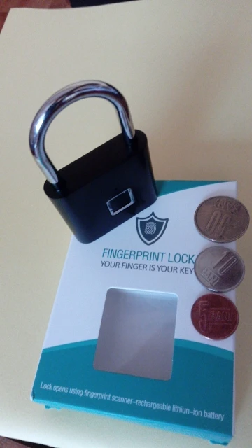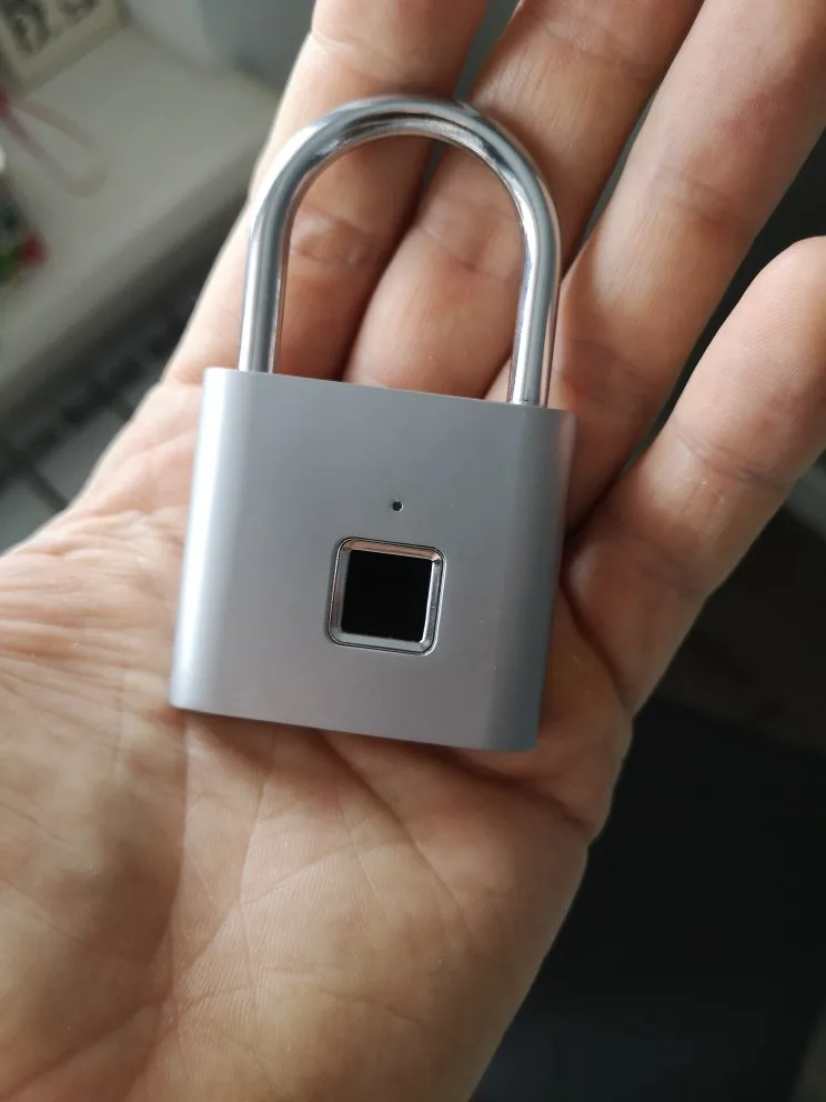 Очень быстрая доставка курьером домой.Качественный замочек в металлическом корпусе.Сразу настроить замок по отпечаткам пальцев не получилось,т.к. не хватало заряда аккумулятора,но после полной зарядки всё заработало.В дальнейшем посмотрим сколько проработает данный девайс.