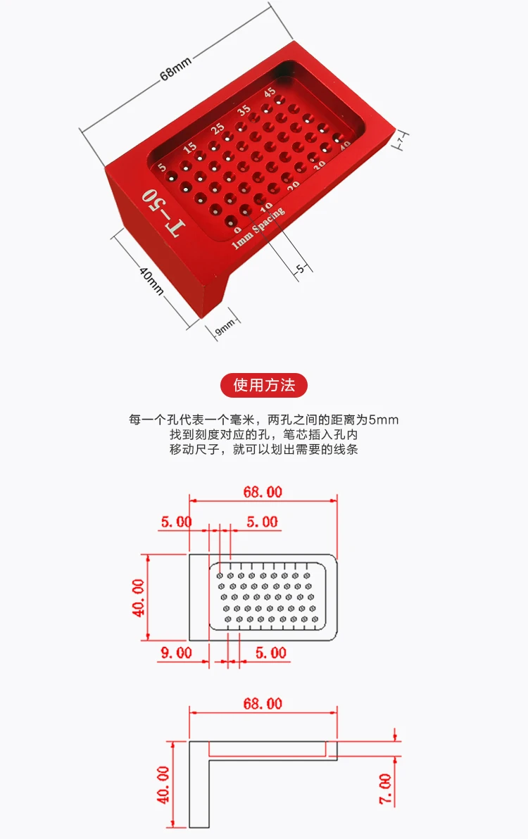 Линейка для деревообработки, Т-образный разметчик, перекрестный измерительный инструмент, Прецизионная треугольная линейка T50, Калибровочная линейка