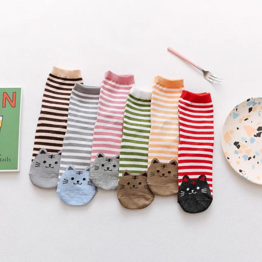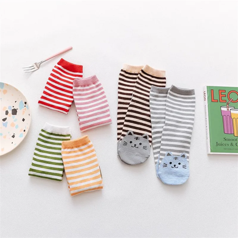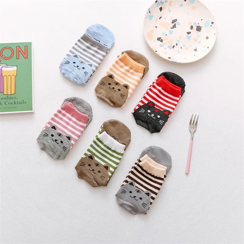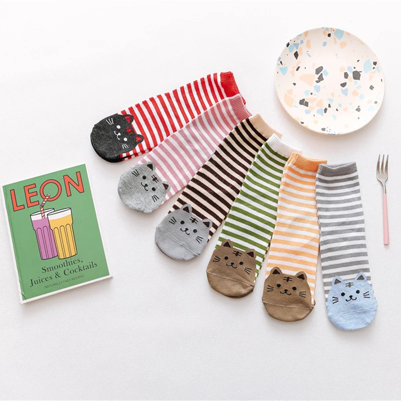 Новые повседневные женские носки в стиле хараджуку с принтом кота, Мультяшные животные, рисунок кота, хлопковые полосатые носки, Femme, носки-тапочки, Kawaii