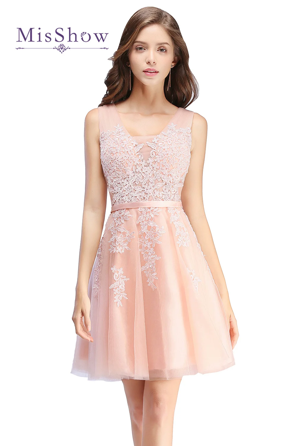 Женское короткое вечернее платье Misshow, роскошное кружевное платье с жемчугом, сексуальное вечернее платье на шнуровке, короткое платье для выпускного вечера