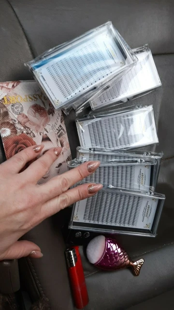 Реснички пришли в целости. Внешне не плохие. проблема всех пучковых ресниц что 8ка у них достаточно длинновата(по сравнению с обычными ленточными ресницами). А у этих ресниц длинна соответствует стандартам. Это мне понравилось В работе ещё не пробовала.