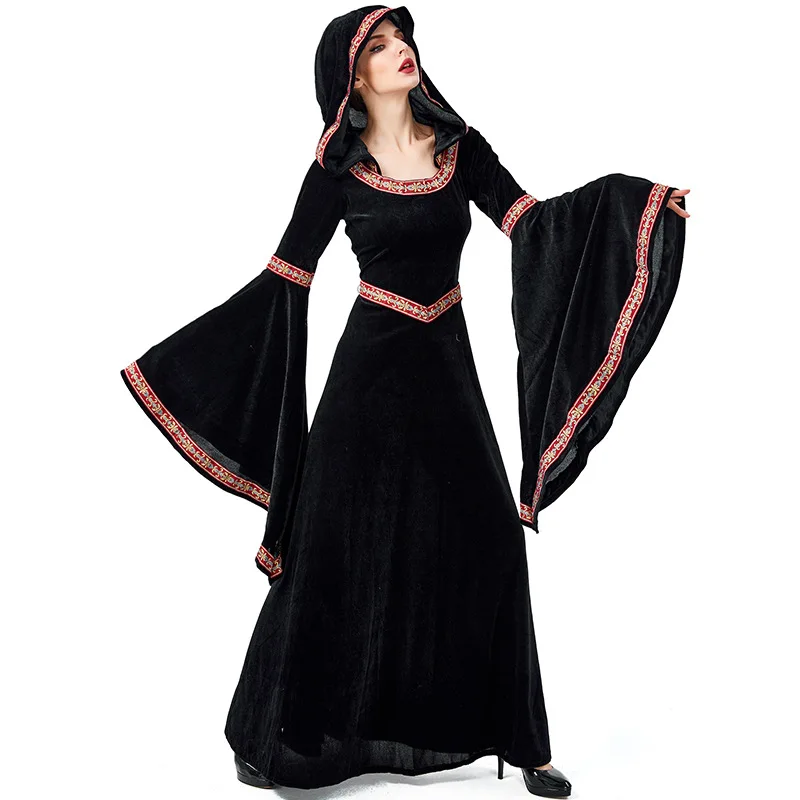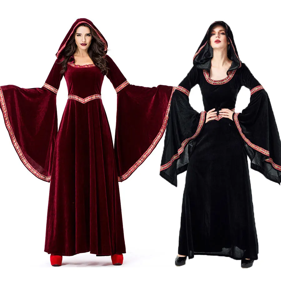Женский средневековый костюм волшебницы Umorden, готический бархатный костюм ведьмы с капюшоном, вечерние костюмы на Хэллоуин