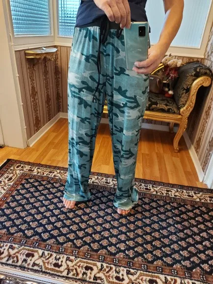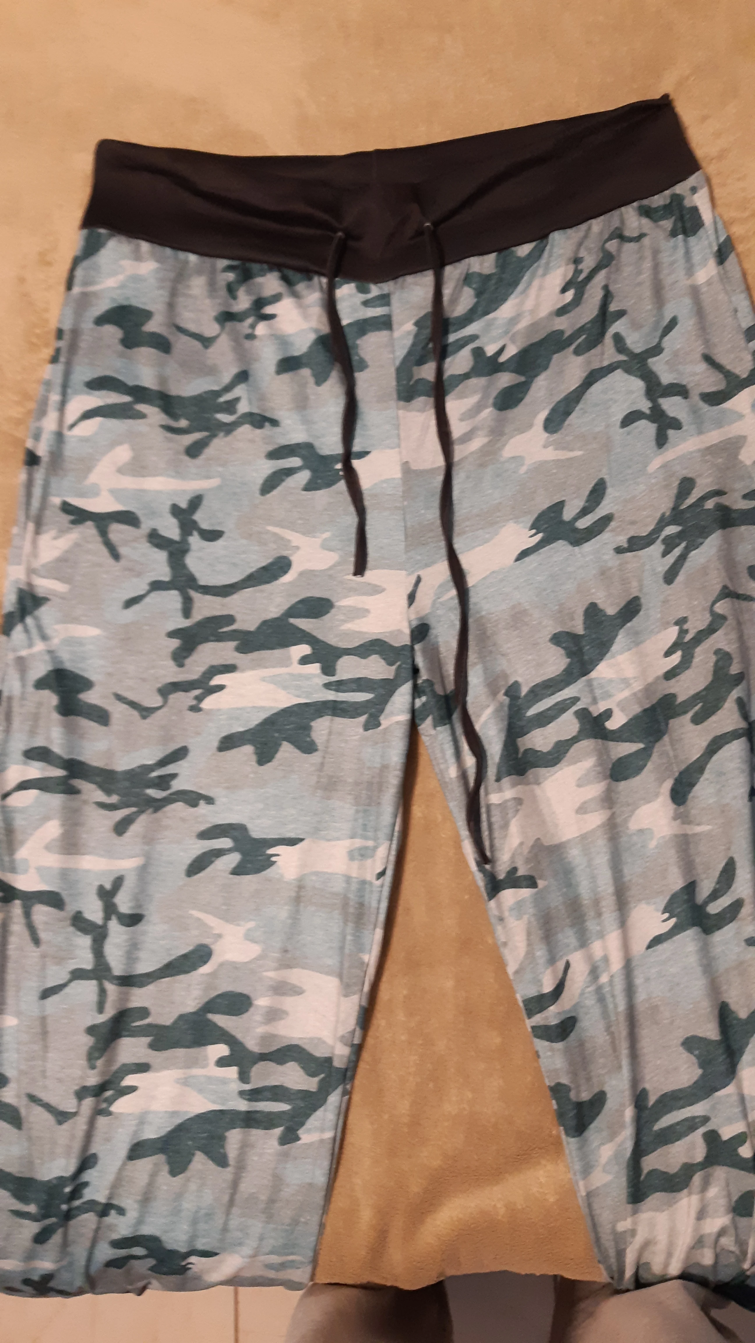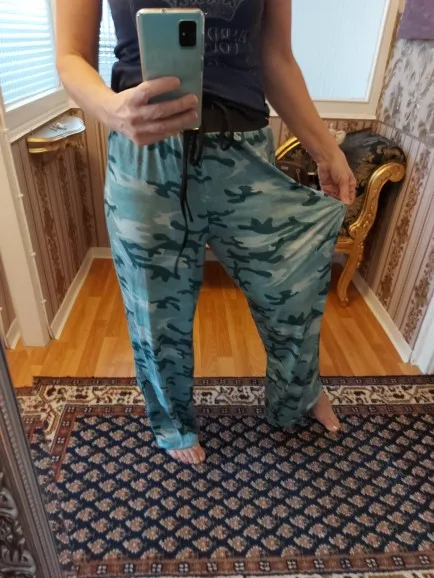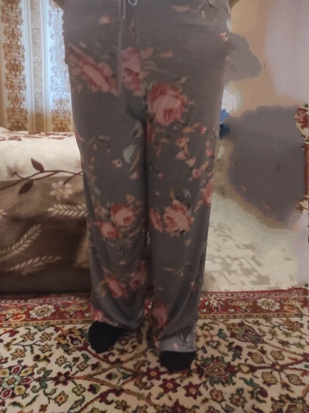 Ткань очень приятная. Пояс шире, чем на картинке. Если нет привычки носить полуспущенные штаны, то на рост 172 см по длине будут впритык. Брала для дома - самое оно.