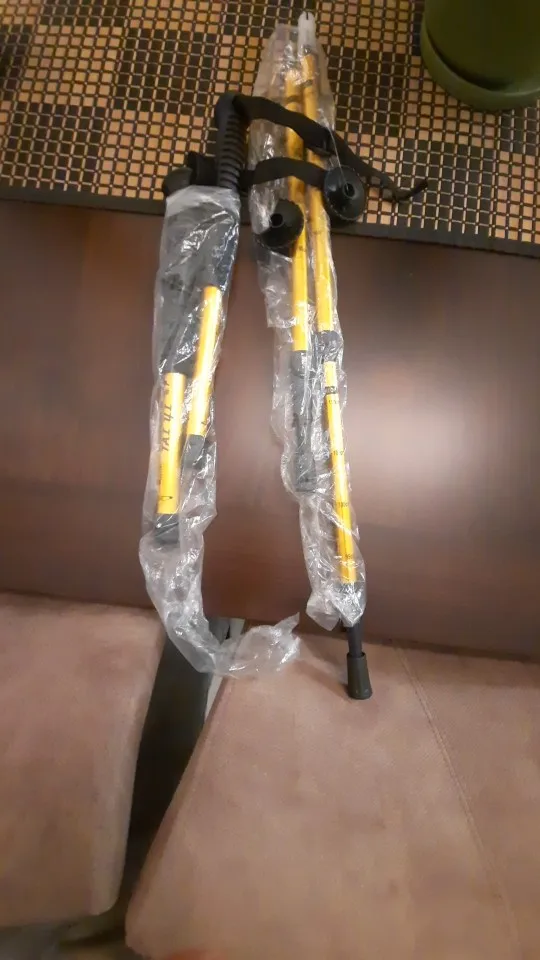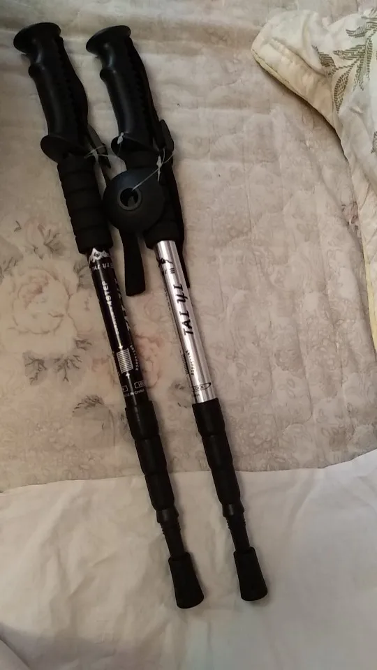 Пришло быстро. Очень доволен этим товаром. Очень выгодно отличается от моих треккинговых палок Leki и амортизирующих прогулочных палочек Wanderfreund, но я заплатил менее четверти от их текущей цены. На фото, АНТИШОК LEKI Wanderfreund слева, а Треккинг-палка AliExpress HZBCLY Store Anti Shock Ultralight-справа. Моя единственная жалоба заключается в том, что стальной наконечник для грязи или скалистых троп слишком длинный и носил через резиновый наконечник всего за 4 дня использования дома. Совет для производителя или магазина HZBLCY: попробуйте вставить несколько стальных шайб в резиновый наконечник, чтобы продлить срок службы. К сожалению, мои резиновые наконечники Leki совместимы и лучше разработаны для работы в течение многих месяцев. При этом общее качество телескопического алюминия и Пластиковой ручки кажется очень хорошим.