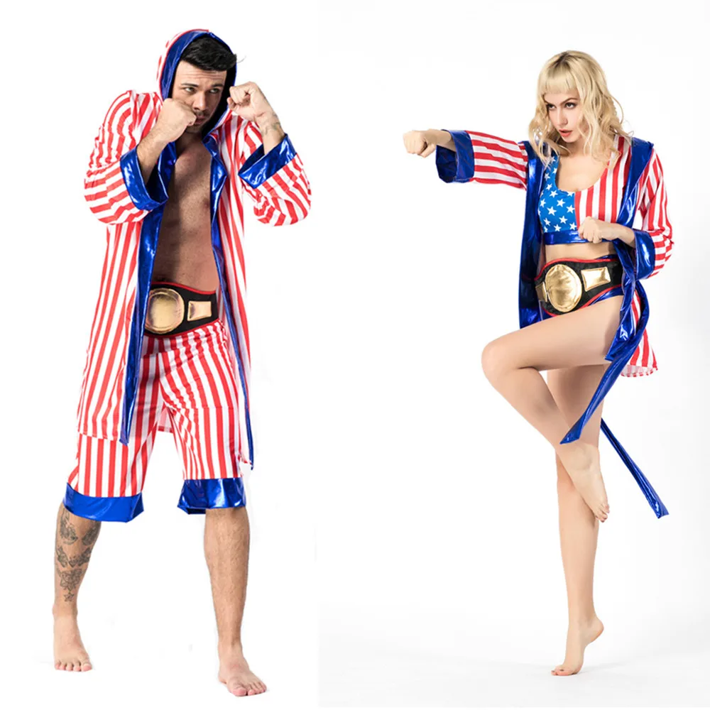 Мужские Для женщин американский флаг боксерский костюм Рокки Бальбоа Бокс халат нарядное платье на Хэллоуин вечерние Косплэй форма