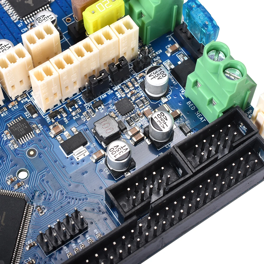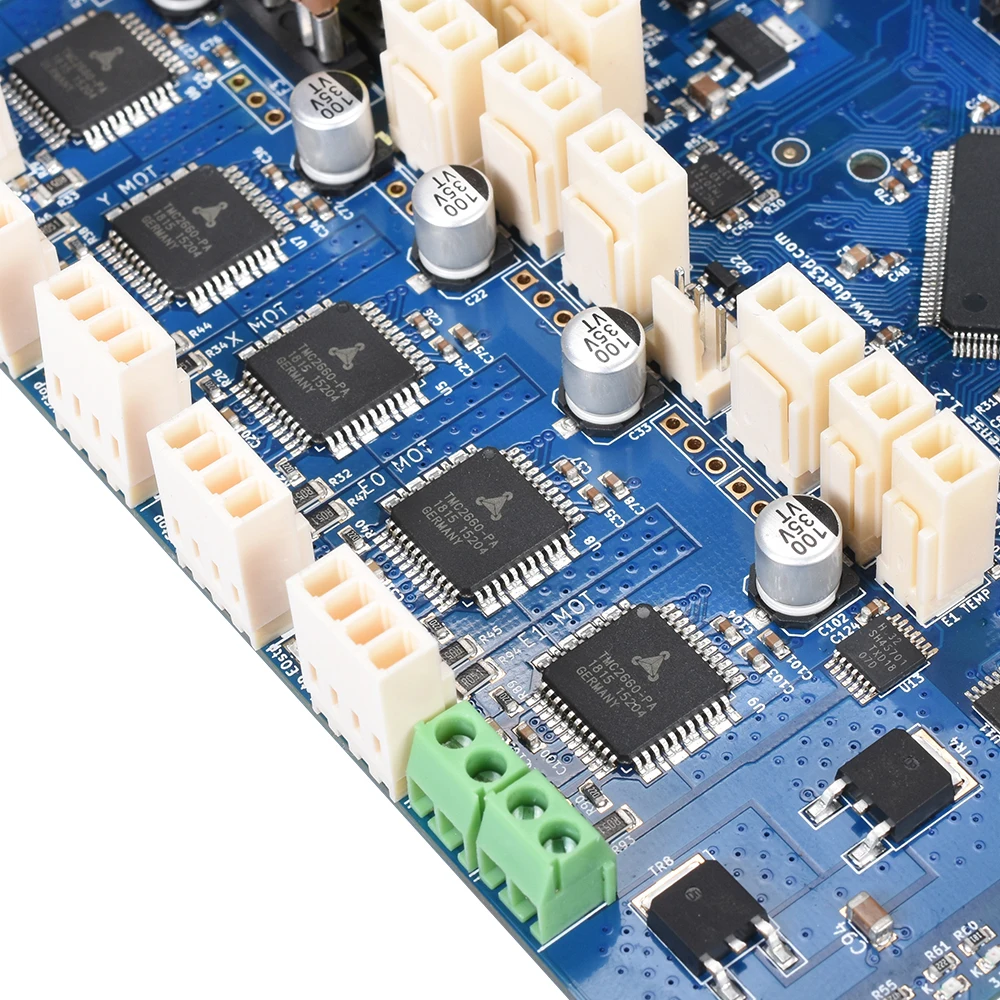 6. Высокая Номинальная мощность: каждый TMC2660 может иметь ток двигателя до 2,8а, но текущая прошивка ограничена максимум2.4A. Канал горячей кровати предназначен для высокого тока (18A).