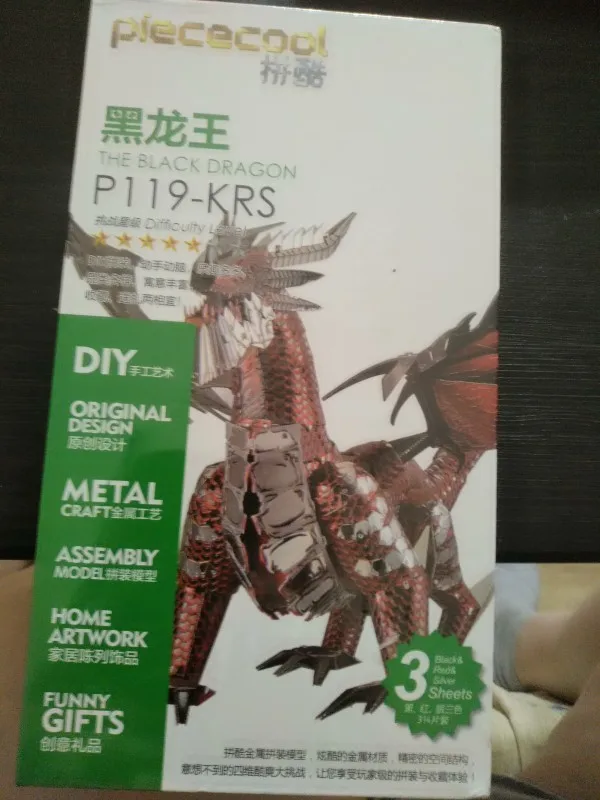 Модель черного дракона, 3D металлическая, 2019 шт.