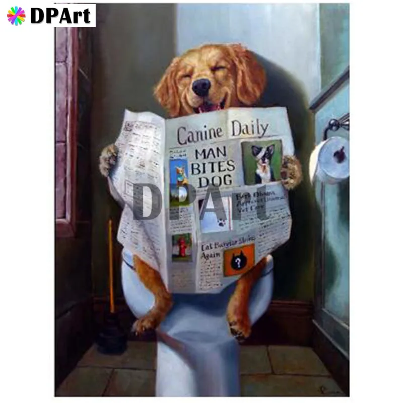 Алмазная живопись 5D, полноразмернаякруглая вышивка, туалет, собака, чтение, газета, алмазная вышивка, вышивка крестиком, мозаика M829
