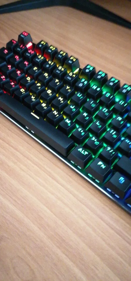+ Хорошее освещение, много режимов на выбор, где вы можете переключать цвета, с динамической скоростью и т. д. + Многофункциональные клавиши, очень полезно играть в музыку во время игр или ходить по ПК -Клавиатура немного неуклюжей на деревянном столе, поэтому я должен был использовать бумагу для поддержки его в одном углу, но это не большая покупка (если у меня был Настольный коврик, это не имеет значения)