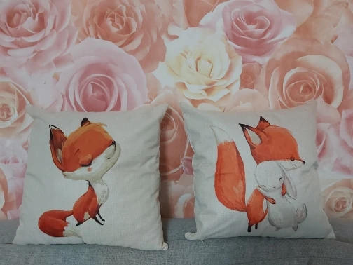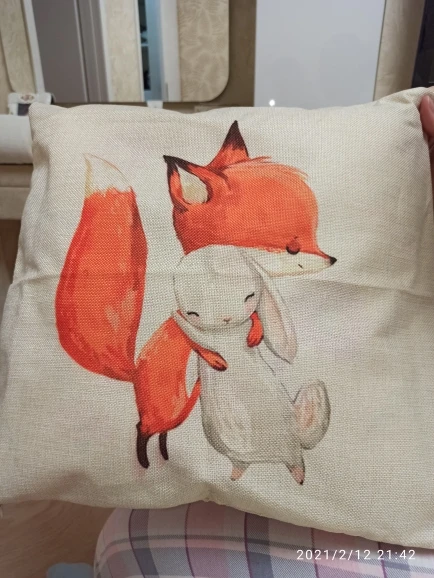 Льняной чехол для диванной подушки, с принтом лисы, кролика