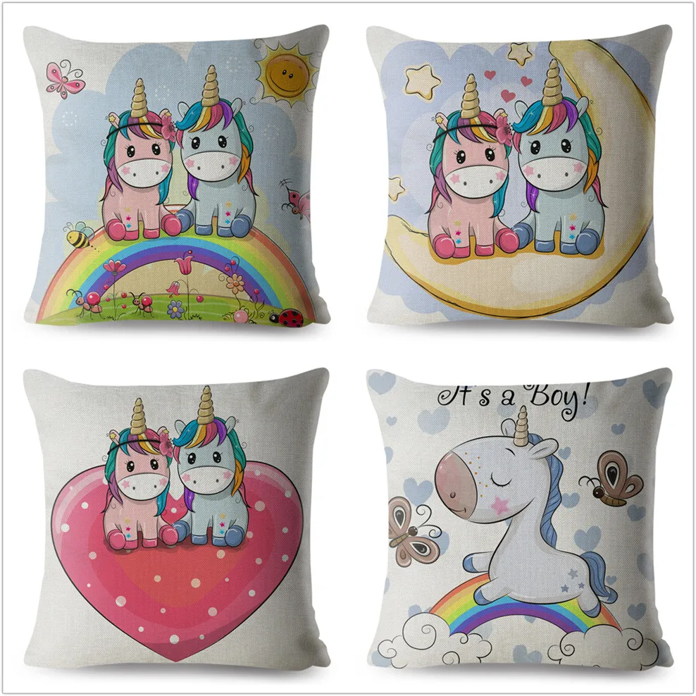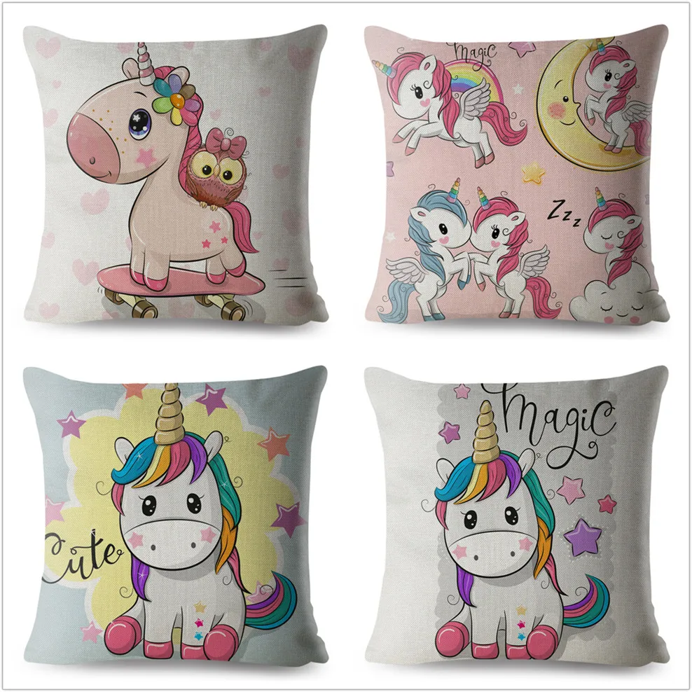 Супер милый мультяшный Единорог чехол для подушки с принтом 45*45 бежевая льняная наволочка для подушки Чехлы для дивана наволочка для домашнего декора