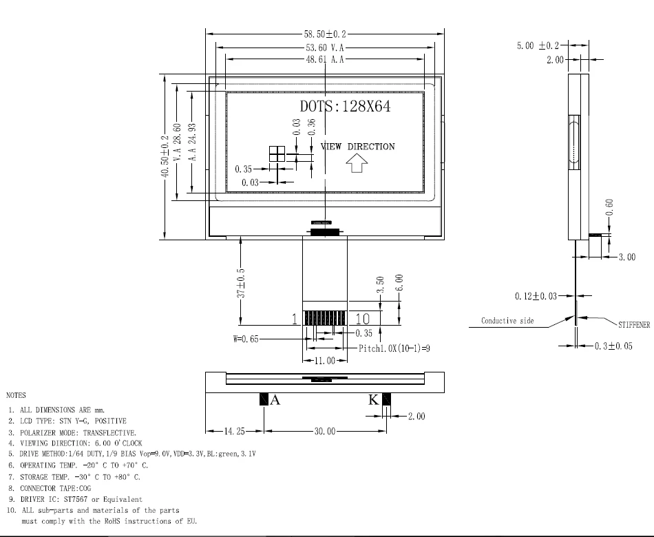 Дисплей ATORCH HSG12865-110, 128x64, ЖК-модуль с зеленым экраном и белым кодом для arduino