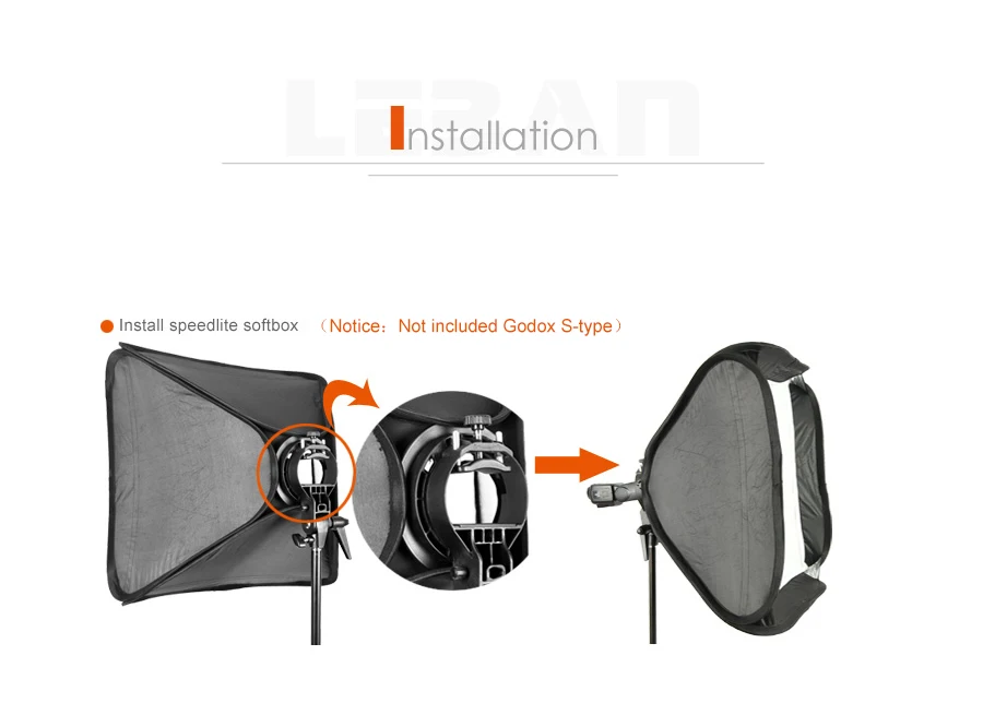 Это портативный и универсальный софтбокс с s-образным кронштейном, предназначенным для speedlites.