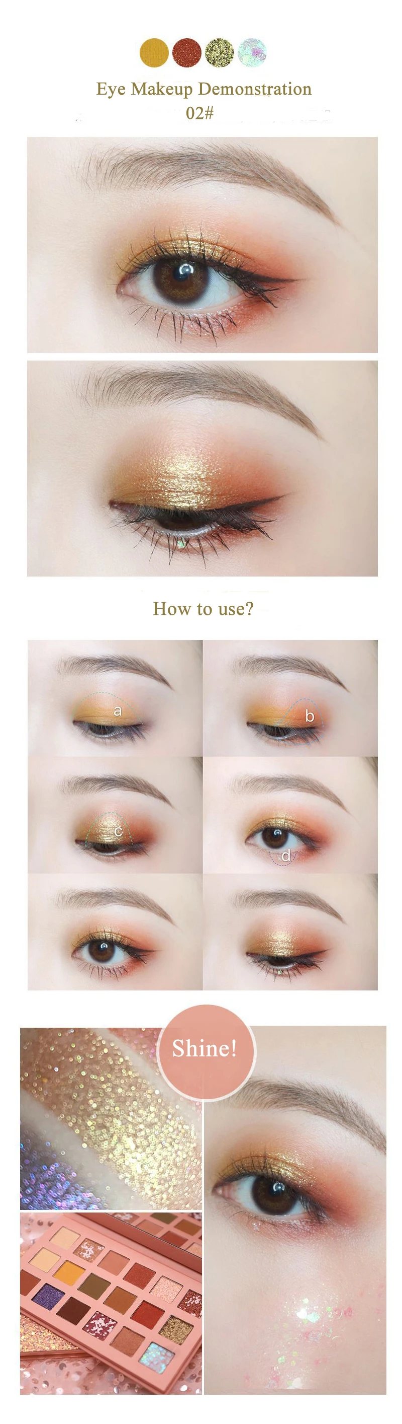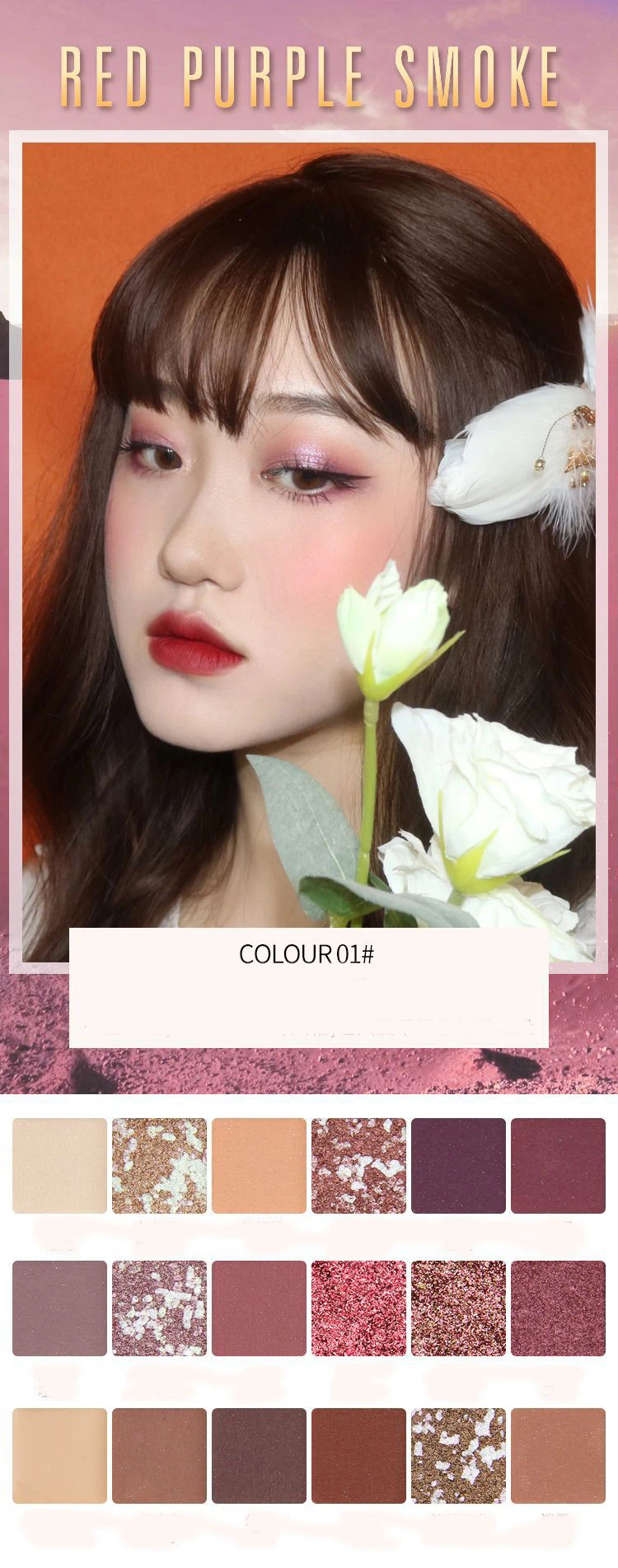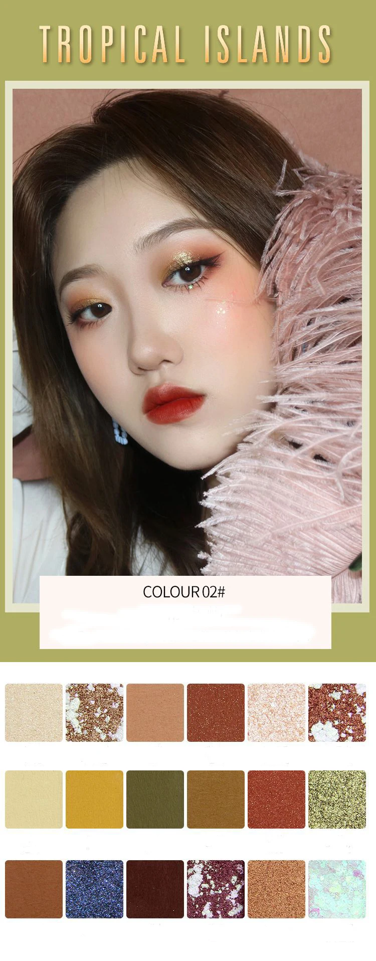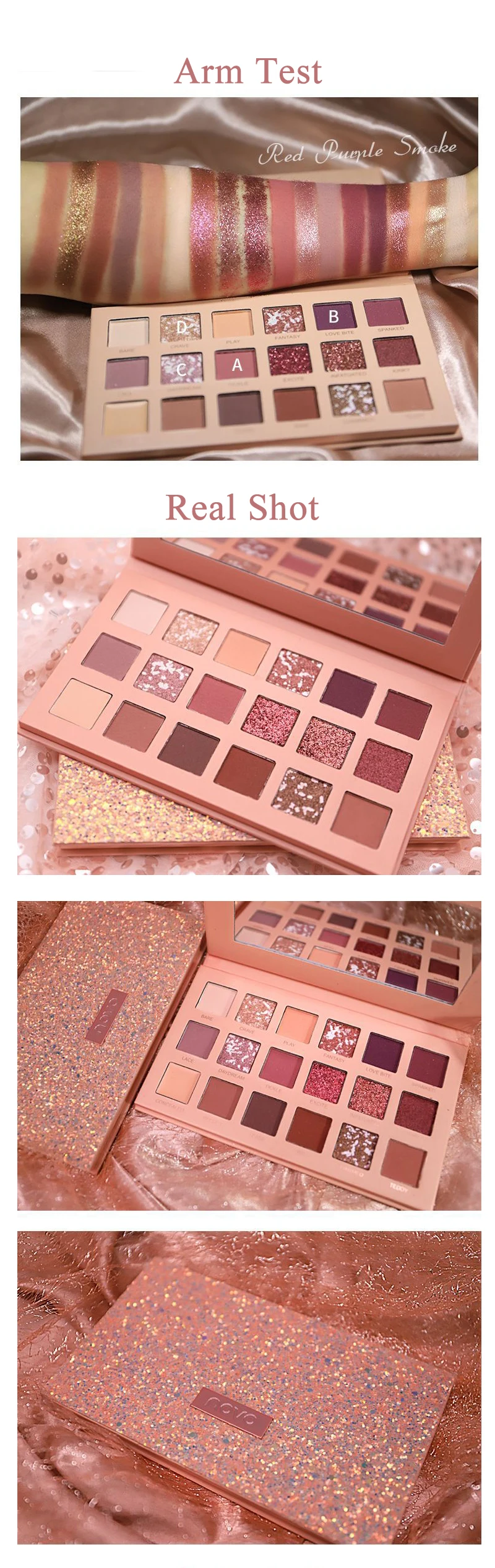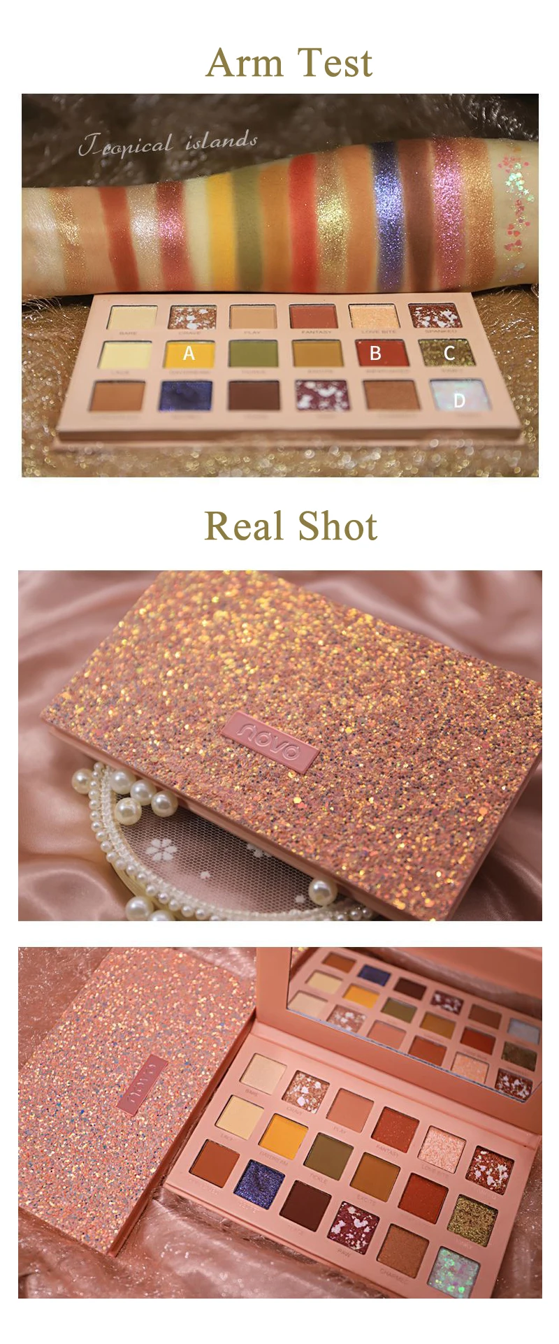 Палитра теней для век с блестками, 18 цветов, матовые, мерцающие, с...